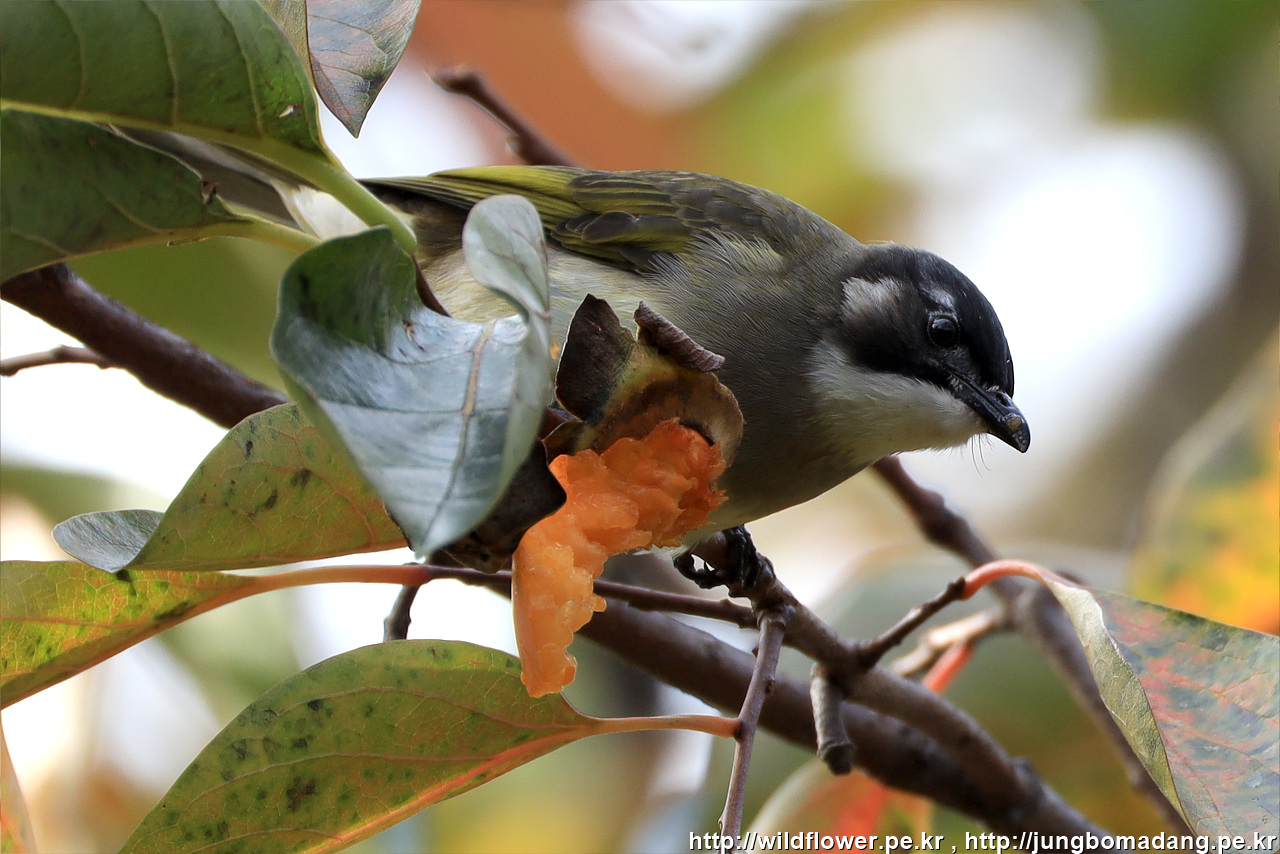검은이마직박구리 - 크롭 사진입니다. 감을 열심히 먹고 있습니다.