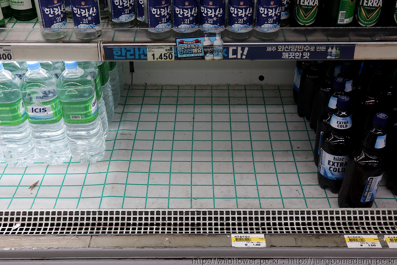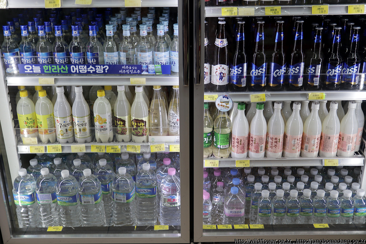 295번을 타고 표선리사무소에서 하차하여 하나로마트에 잠시 들렸는 데, 헐~ 제가 애용하는 핑크빛 제주쌀막걸리가 한병도 없는겁니다. 고민하다가 지평 2병을 고릅니다.