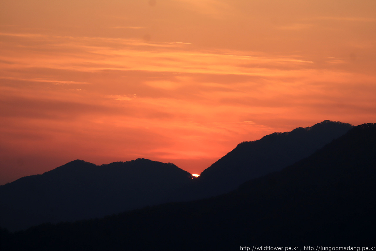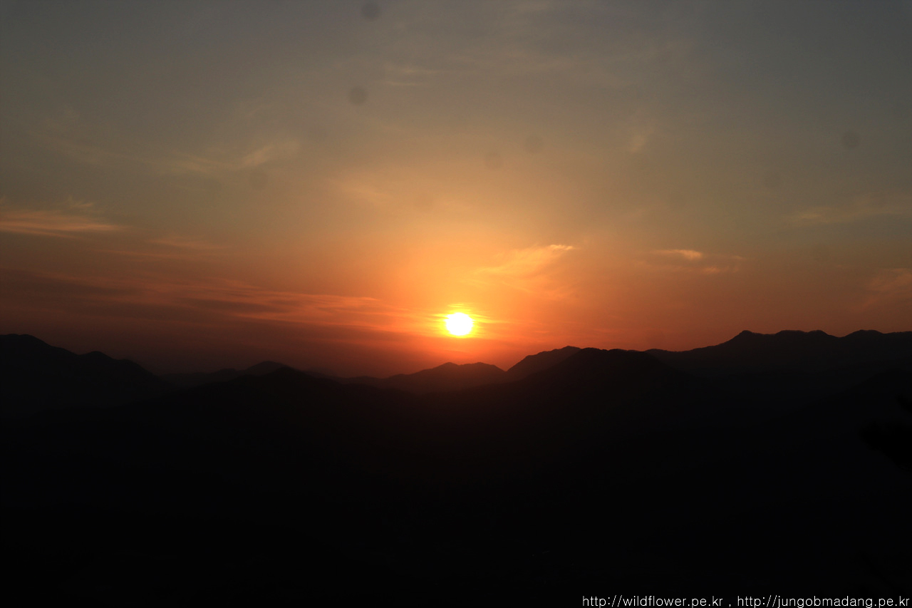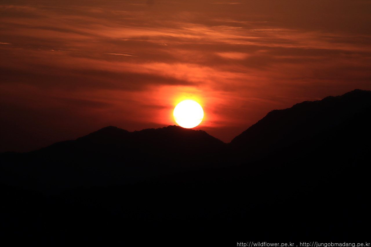 일몰 끝. 햇님이 산이든 수평선이든 걸칠 때부터 2분이 지나면 햇님이 사라집니다. 그러니 어물쩡 하면 안되고 열심히 봐야하고 담으실 분은 담아야 합니다.