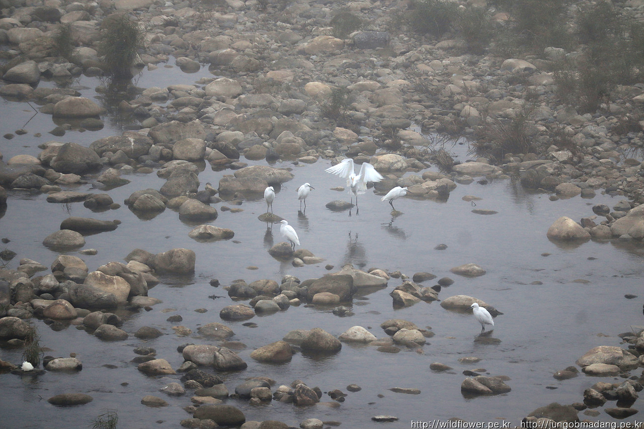 아침에 운해를 미리보기 하 듯 대지에는 열심히 안개가 모여들고 있습니다.