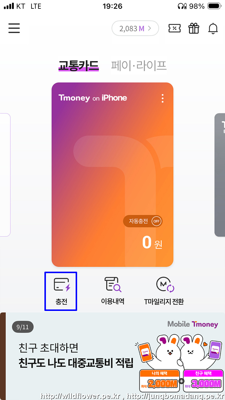 참고로 T마일리지를 통한 충전 방법도 안내합니다.