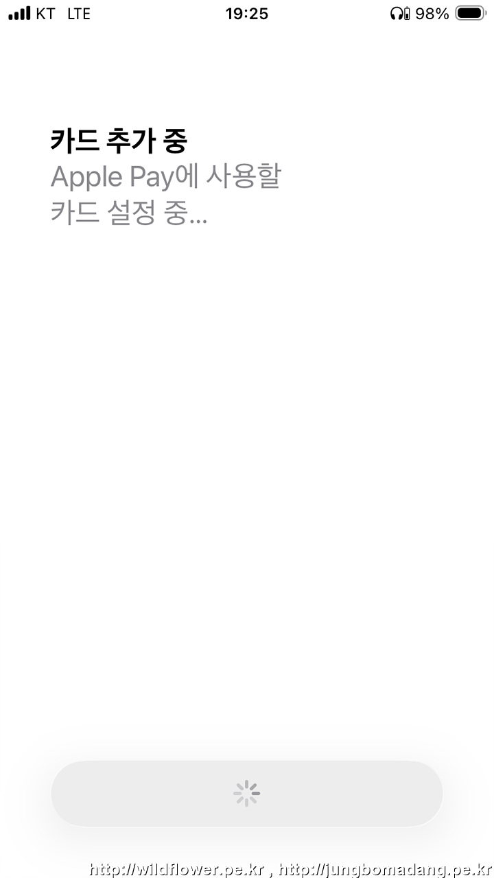 11. 카드 추가 중 - Apple Pay에 카드 설정 중... 이라고 나오는 데 기다립니다.
