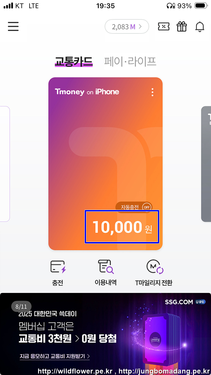 참고로 T마일리지를 통한 충전 방법도 안내합니다.
