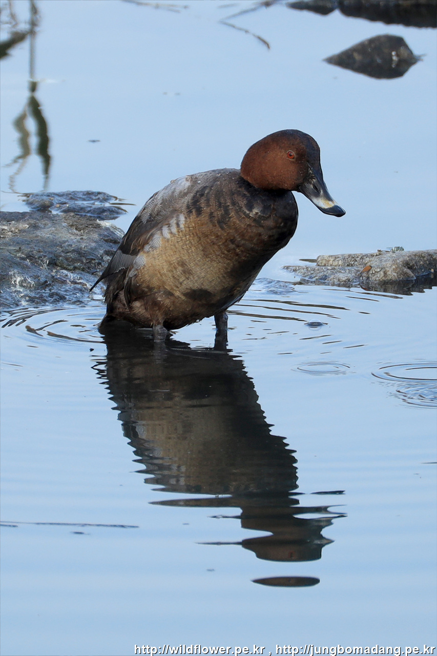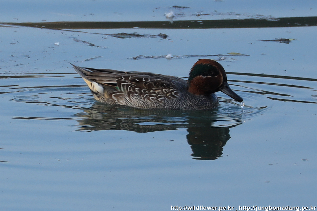쇠오리 - 수컷 변환깃. 크롭 사진입니다. 머리가 일단 수컷으로 변신 되었네요.