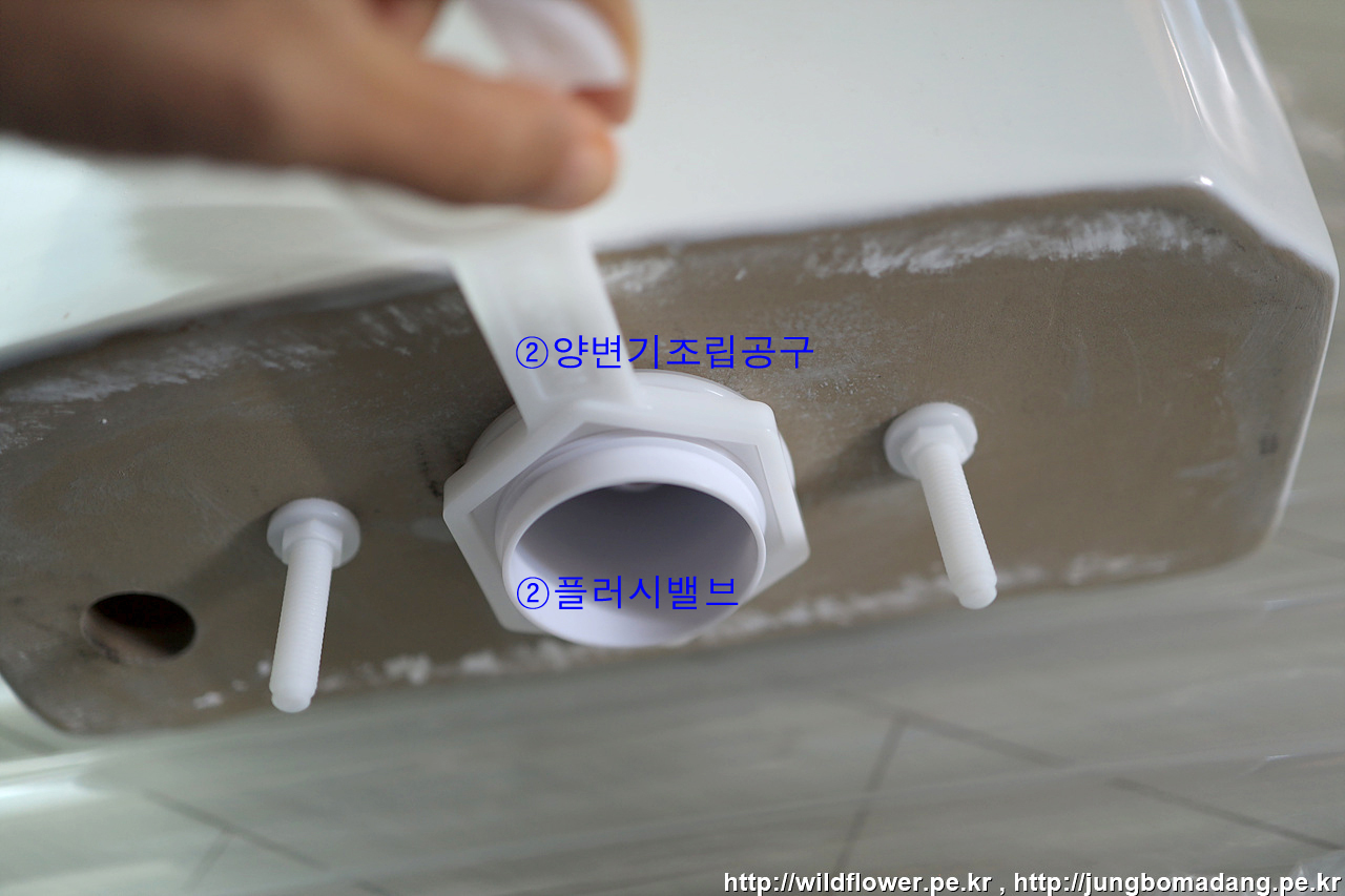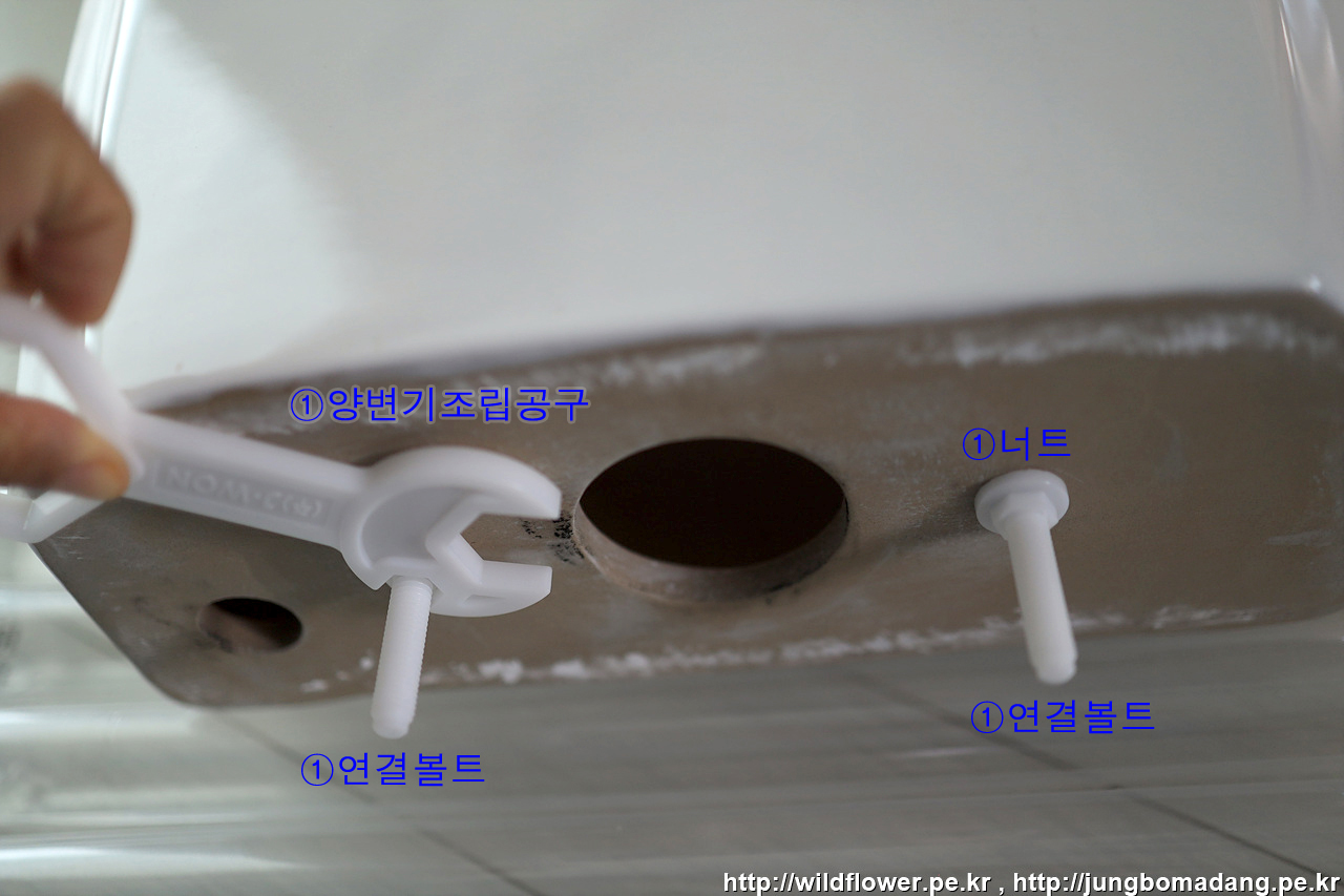 1. 탱크 세팅 - 양변기조립공구를 이용해서 뻑뻑하게 조입니다.