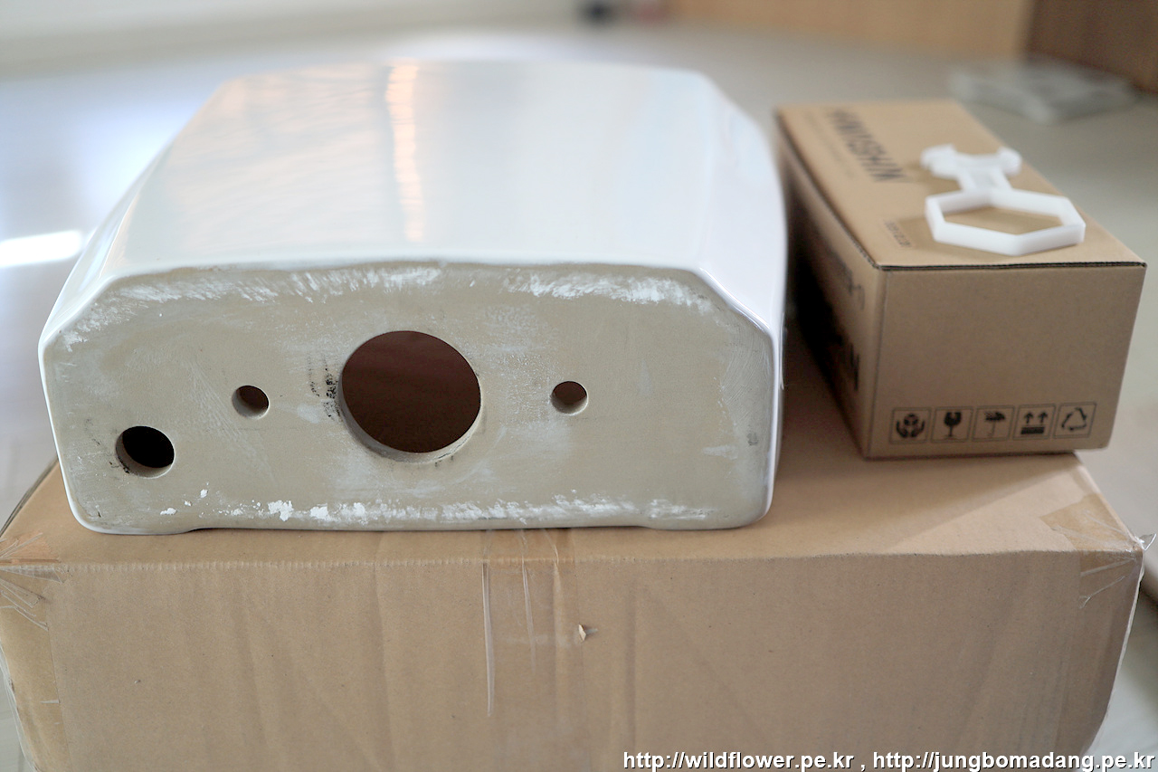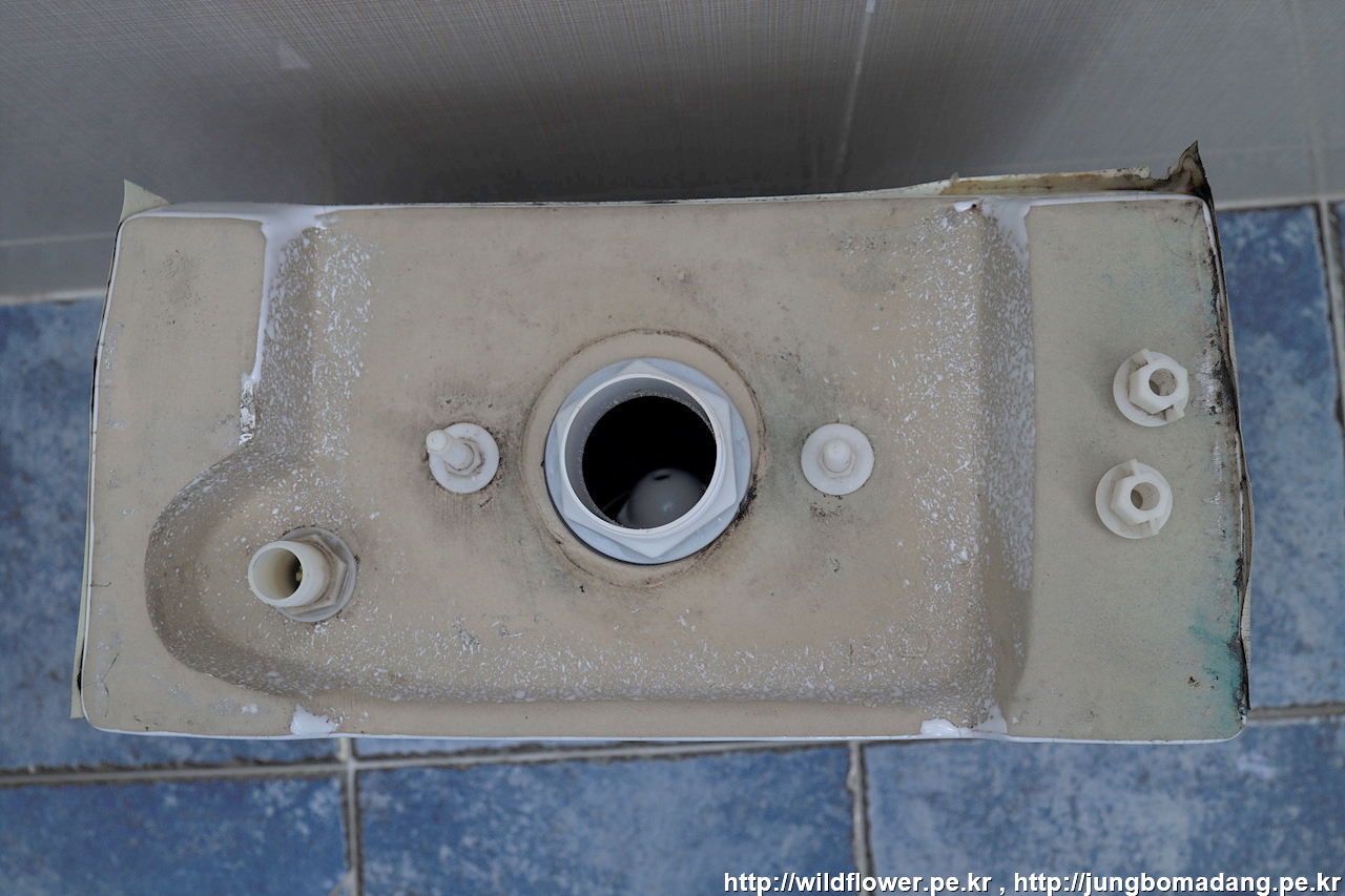 물탱크 아래쪽 모습입니다. 부속품을 하나 하나 조립을 해야 합니다.
