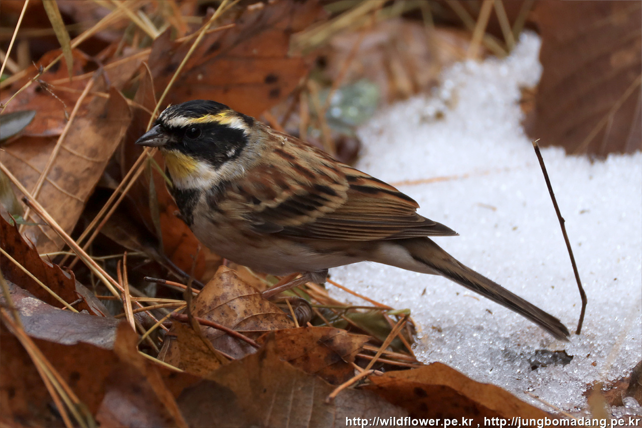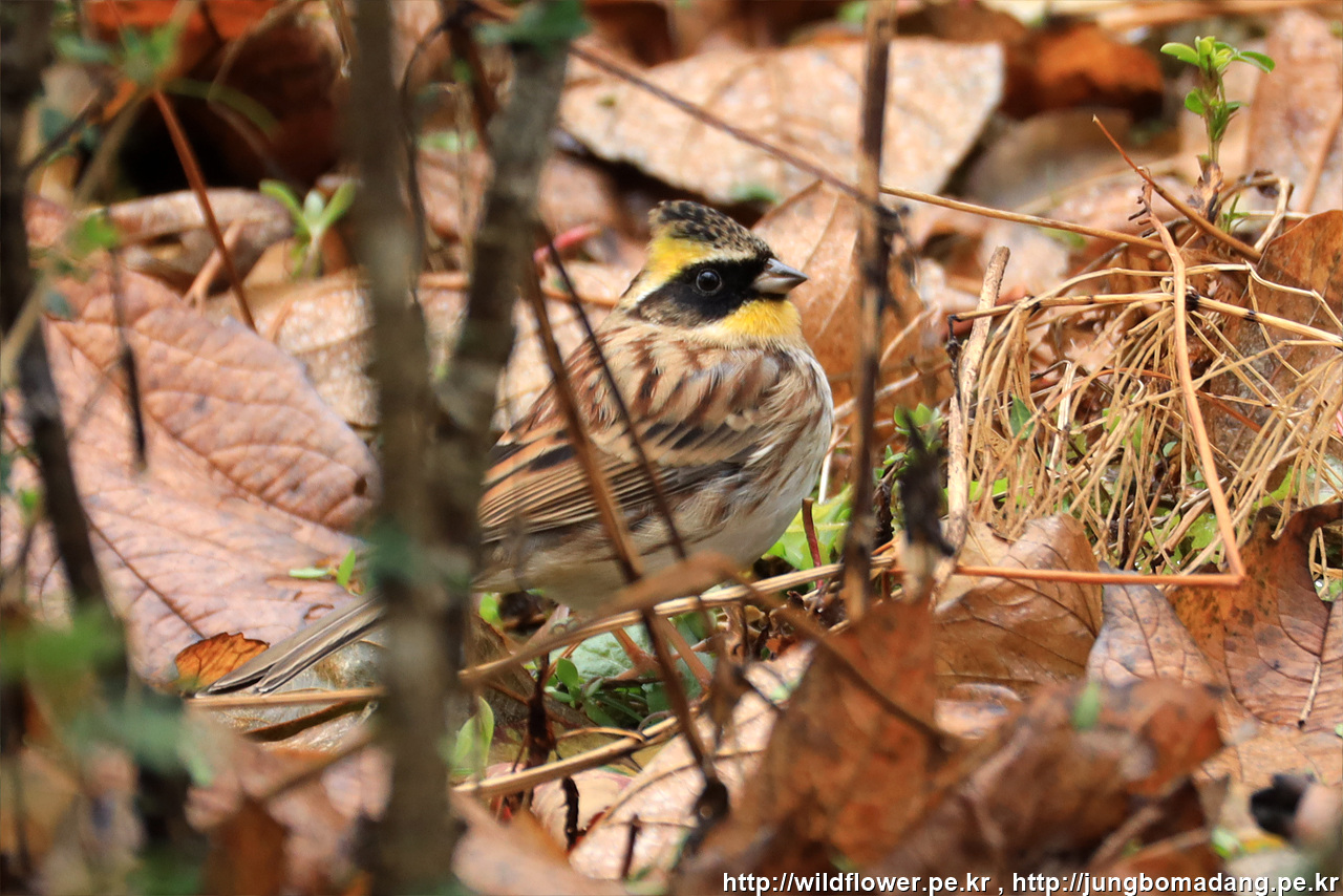 노랑턱멧새 - 수컷. 크롭 사진입니다. 바닥에서 먹이를 찾고 있네요.