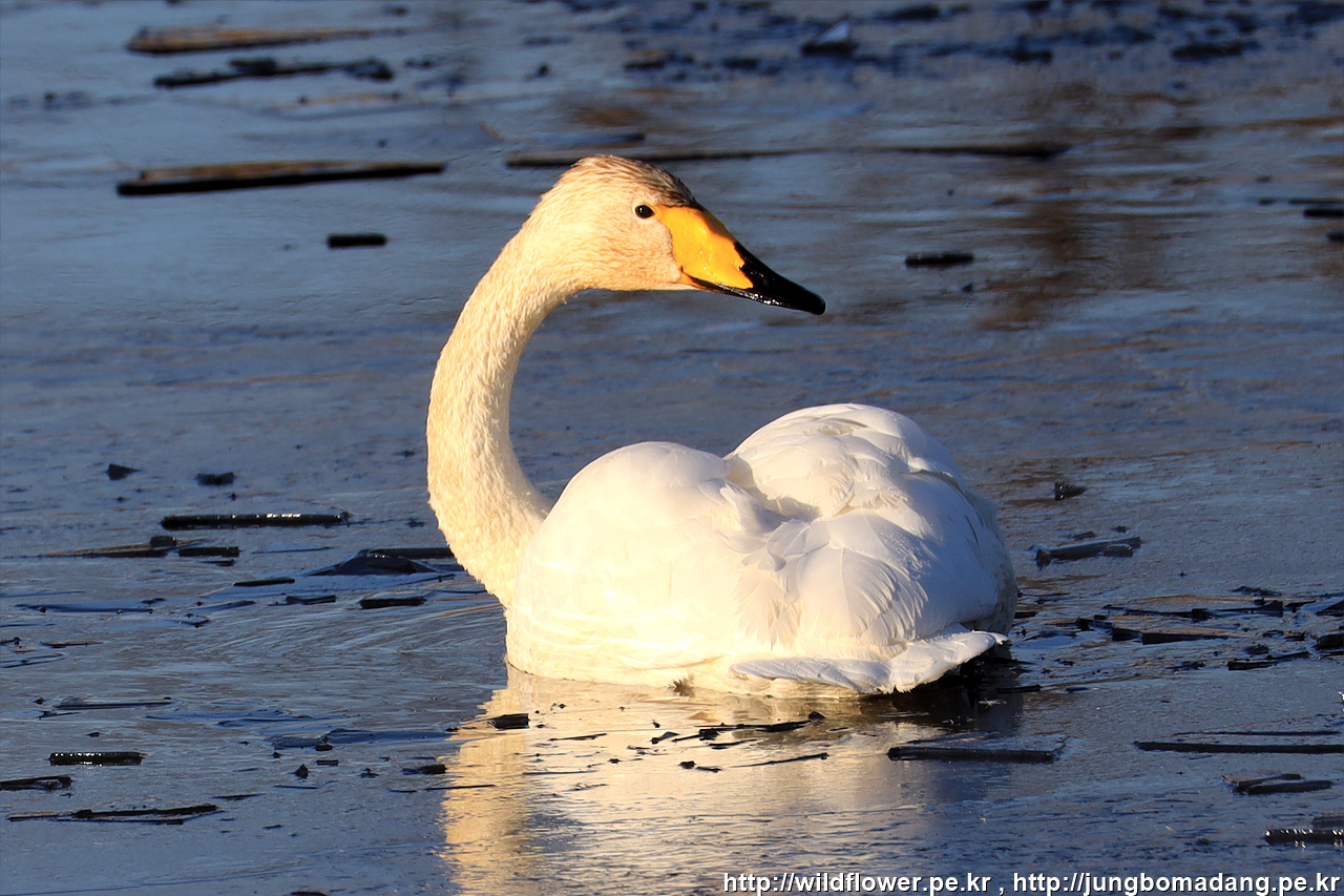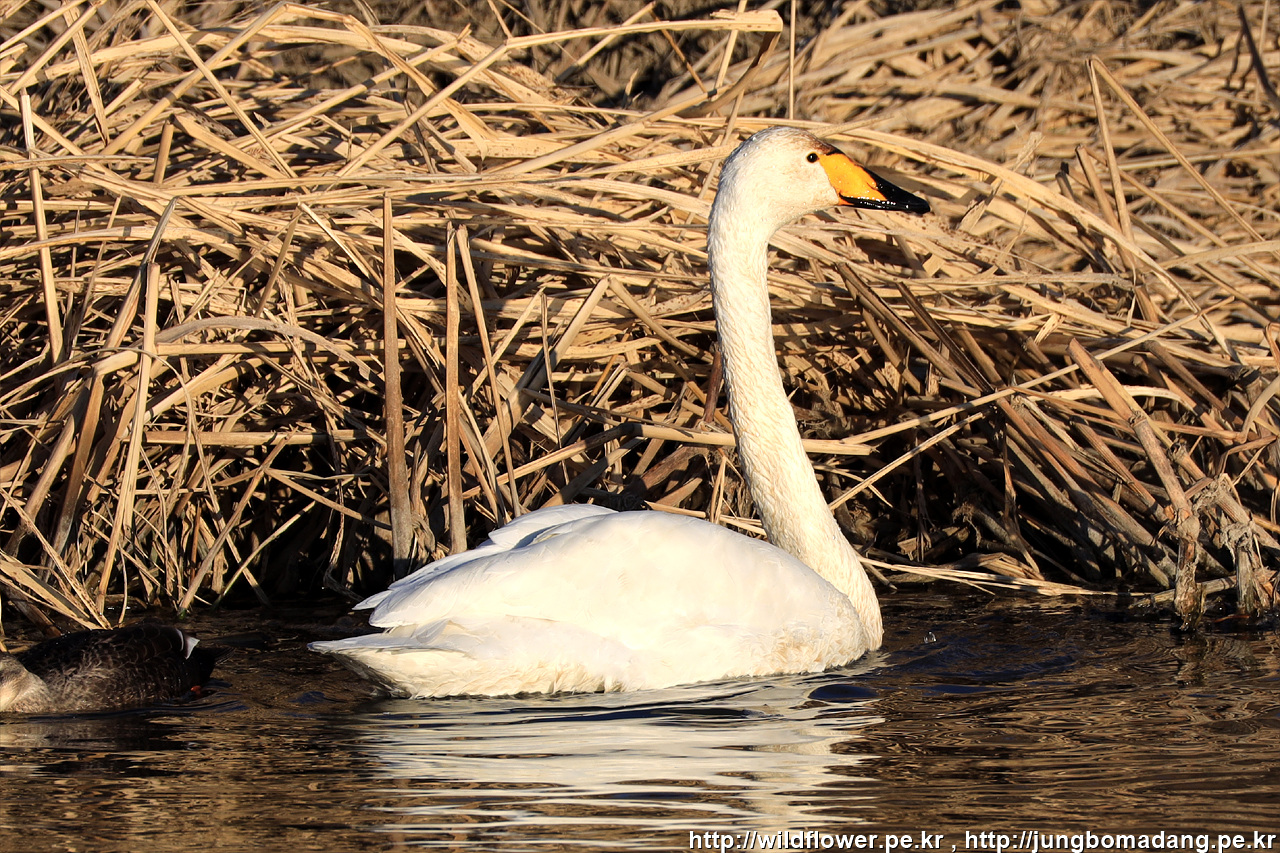 큰고니 - 크롭 사진입니다. 백조라고도 불리우죠. 작년에서 2마리 관찰했는 데, 이번에도 위치는 다르지만 2마리가 같이 있습니다.