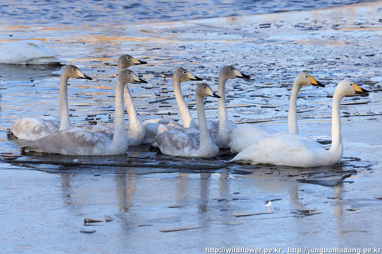 큰고니 - 1회 겨울깃(머리가 회색 6마리)
