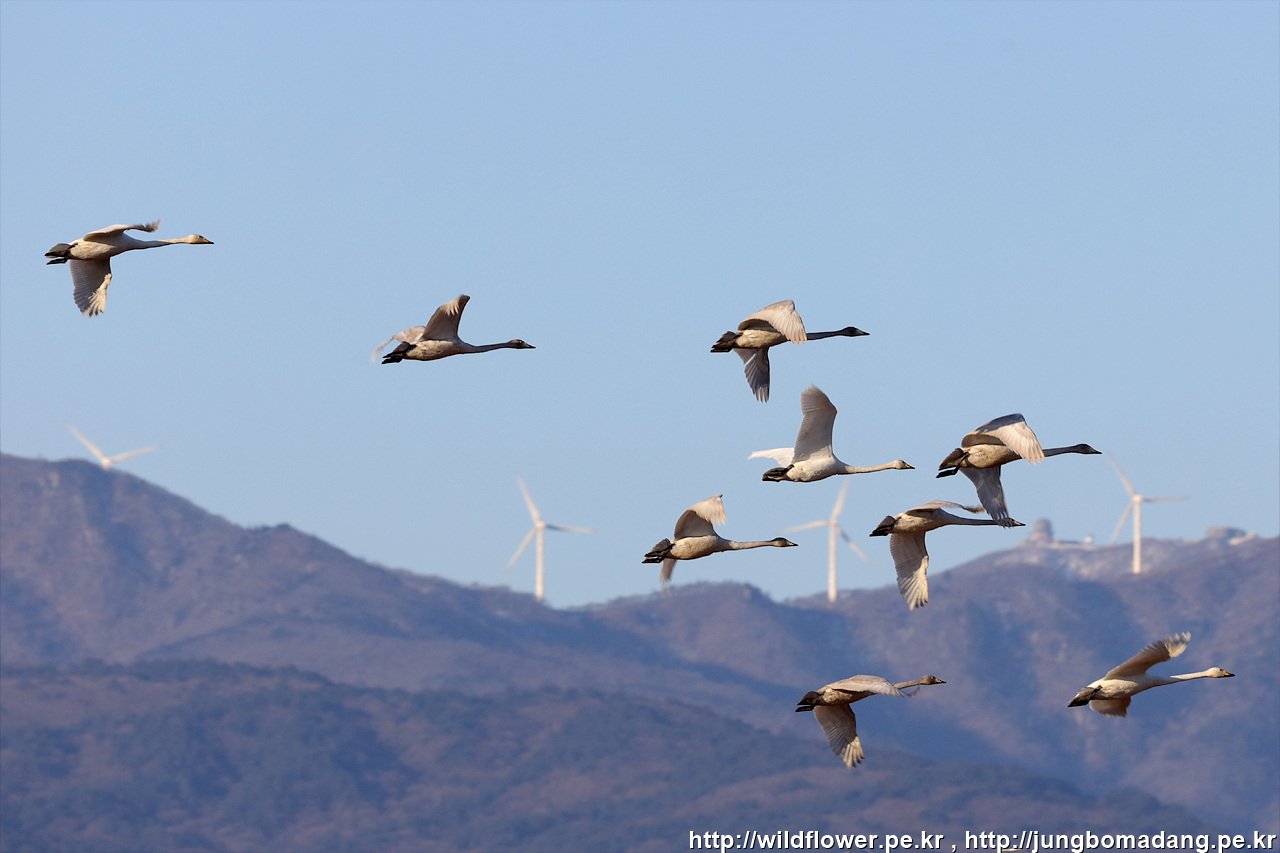 하늘을 비상하던 큰고니 무리들이 제가 조우했던 큰고니들과 합류합니다.