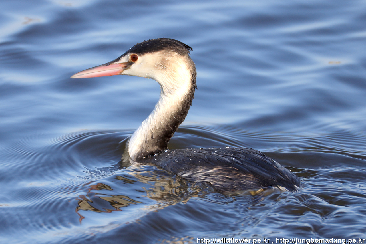 뿔논병아리 - 겨울깃. 크롭 사진입니다.
