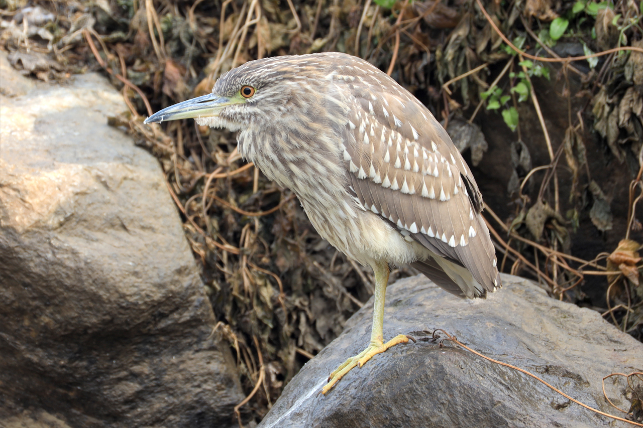 해오라기 - 유조(어린새). 크롭 사진입니다. 불광천에서 처음 보네요.