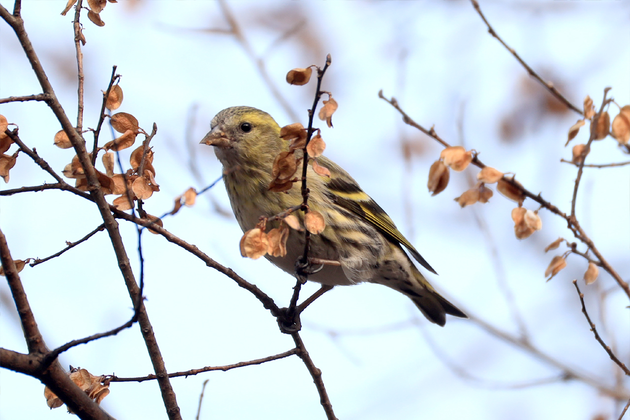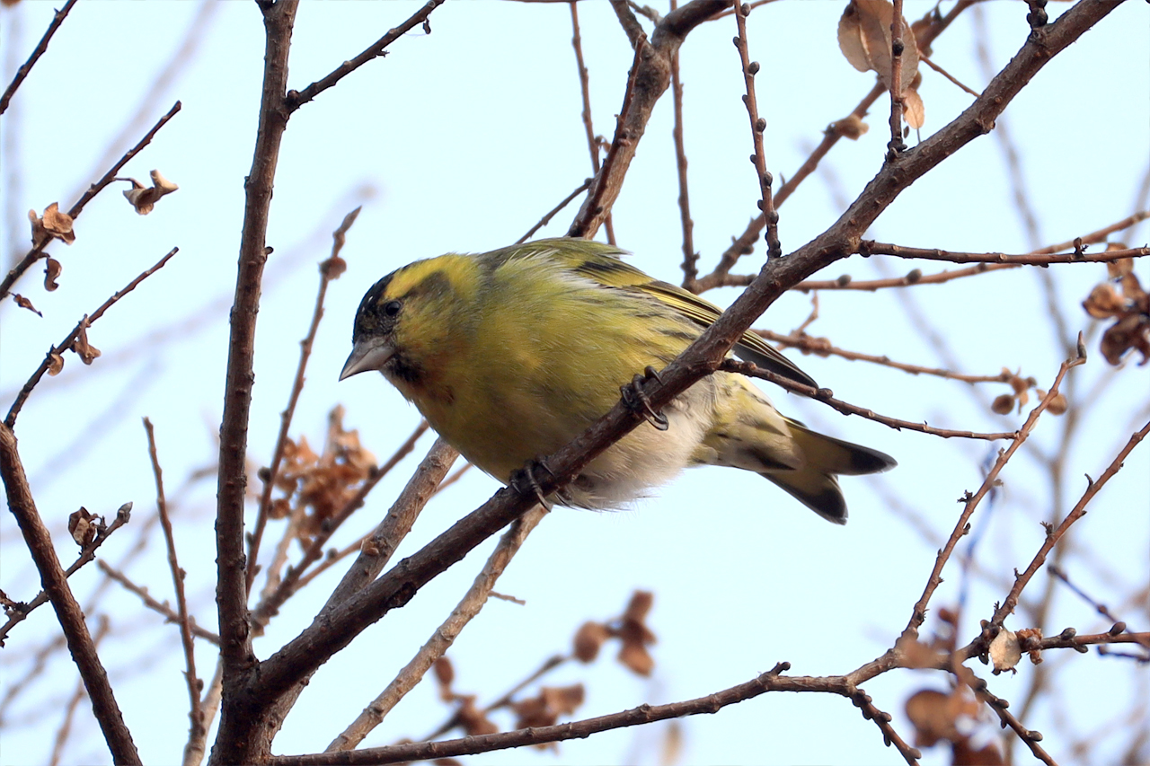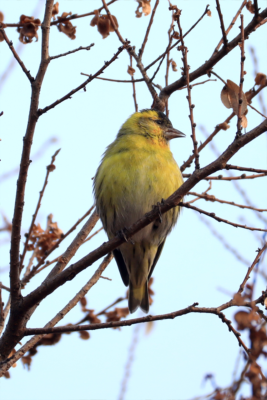 검은머리방울새 - 암컷. 크롭 사진입니다. 처음 만나네요. 무리지어 다니는 새입니다.