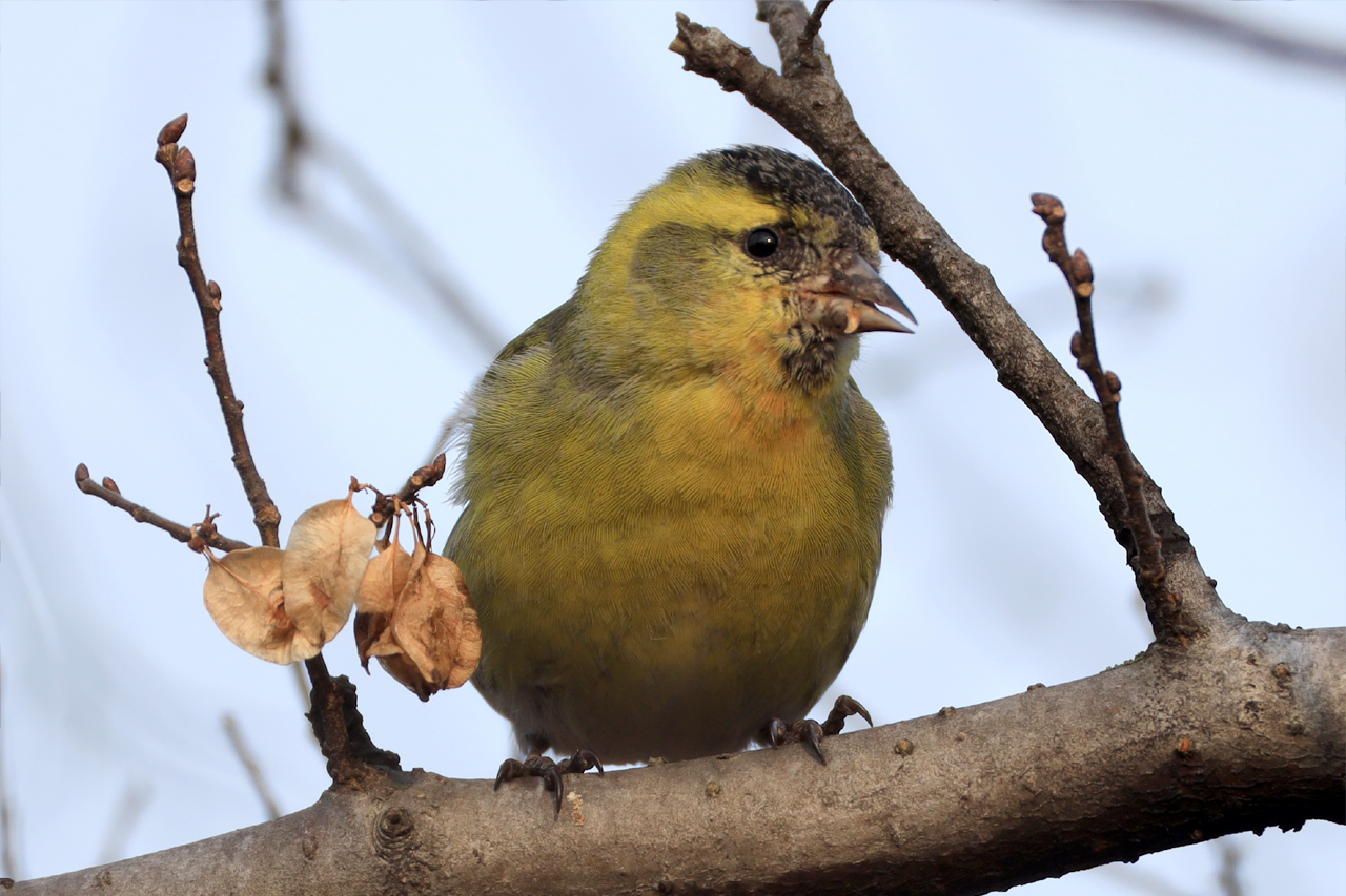 검은머리방울새 - 수컷 1회 겨울깃. 크롭 사진입니다.