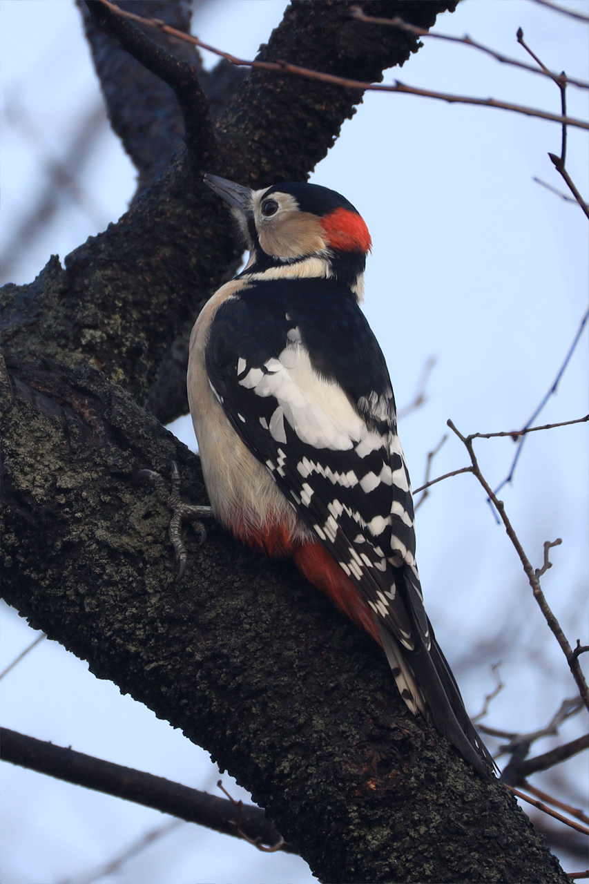 오색딱따구리 - 수컷 겨울깃. 크롭 사진입니다. 처음 마주한 것은 오색딱따구리. '삑~' '삑~' 소리를 내며 이나무 저나무 옮겨 다닙니다.