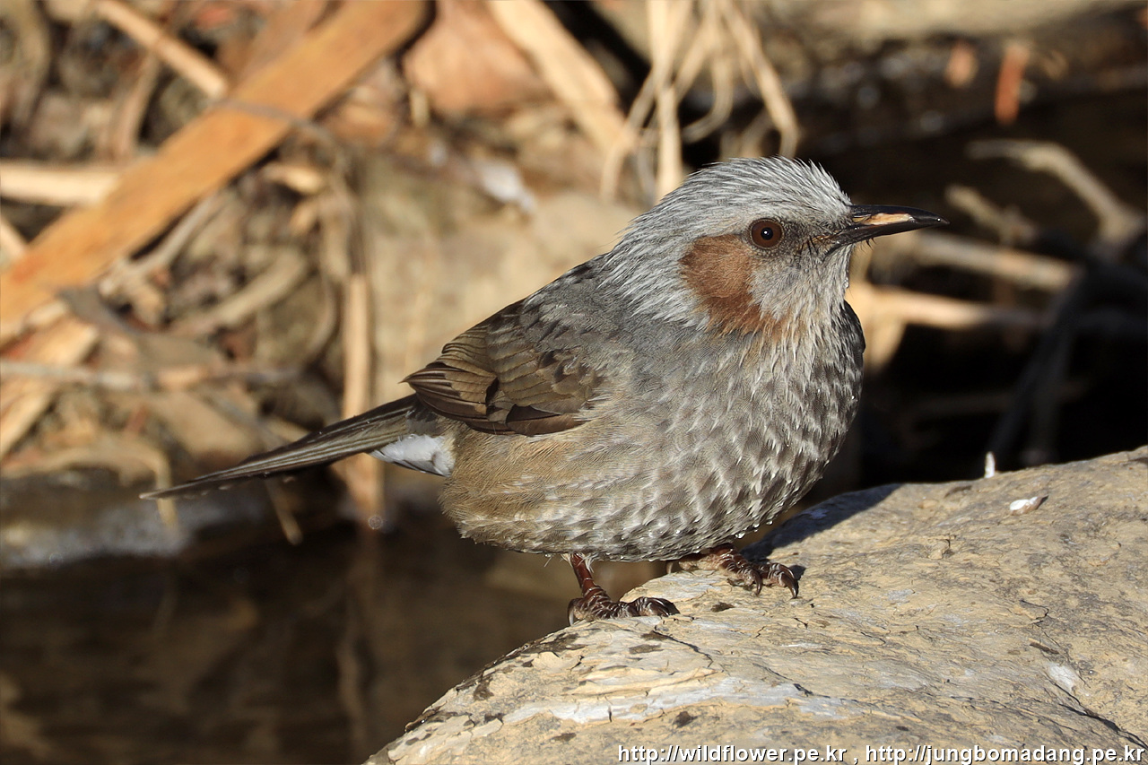 노랑턱멧새 - 암컷. 크롭 사진입니다.