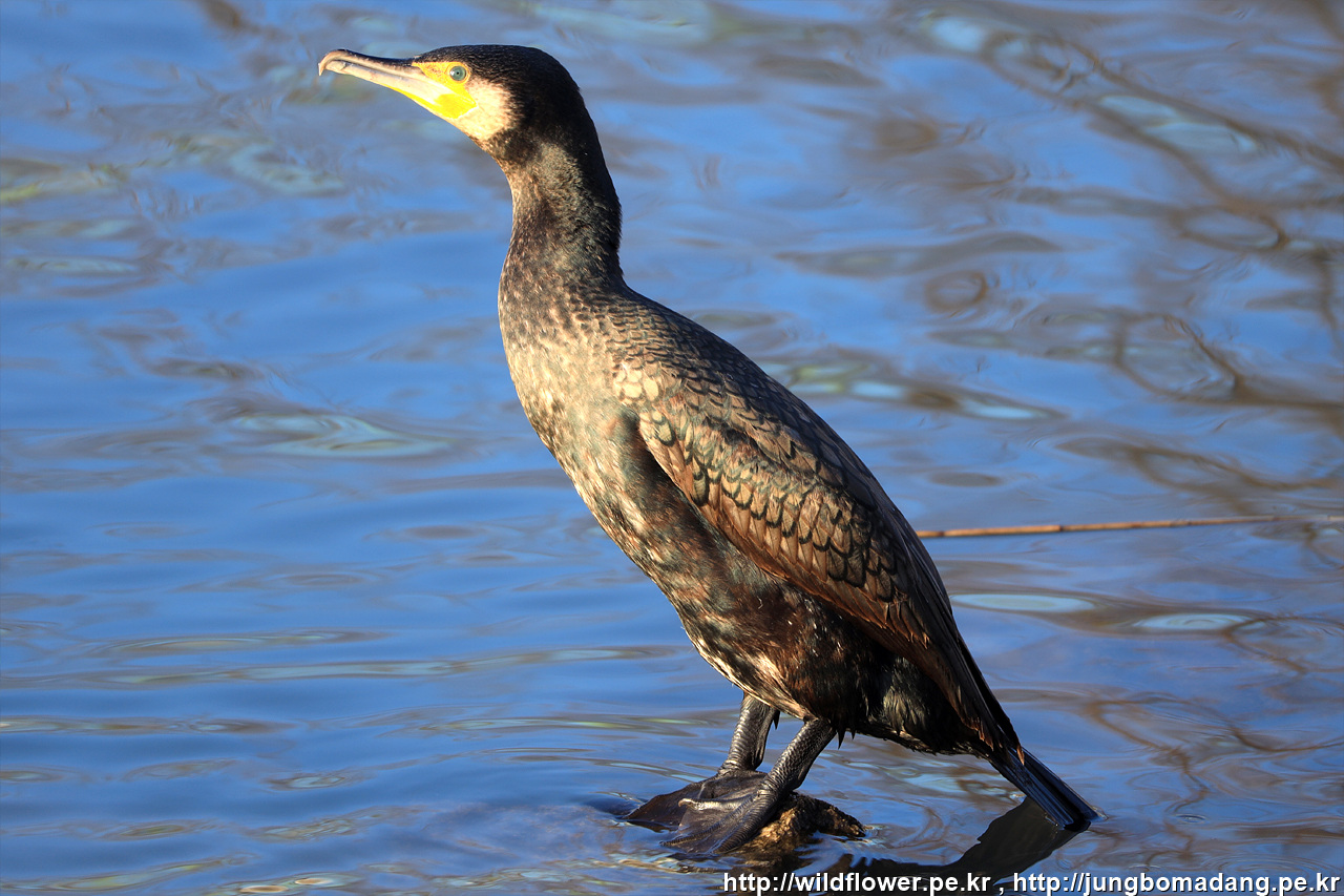 민물가마우지 - 번식깃. 크롭 사진입니다.