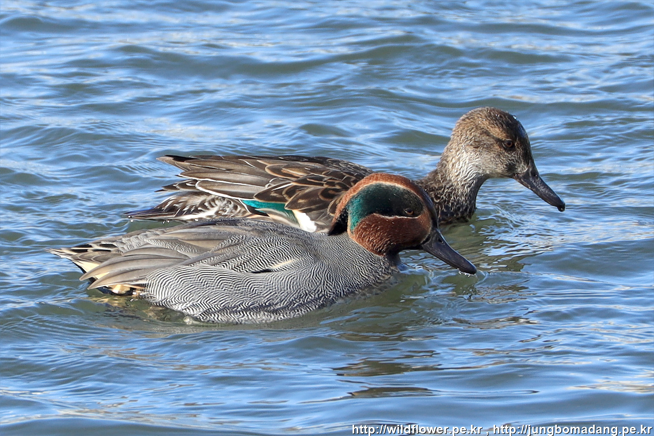 쇠오리 - 수컷, 암컷. 크롭 사진입니다.