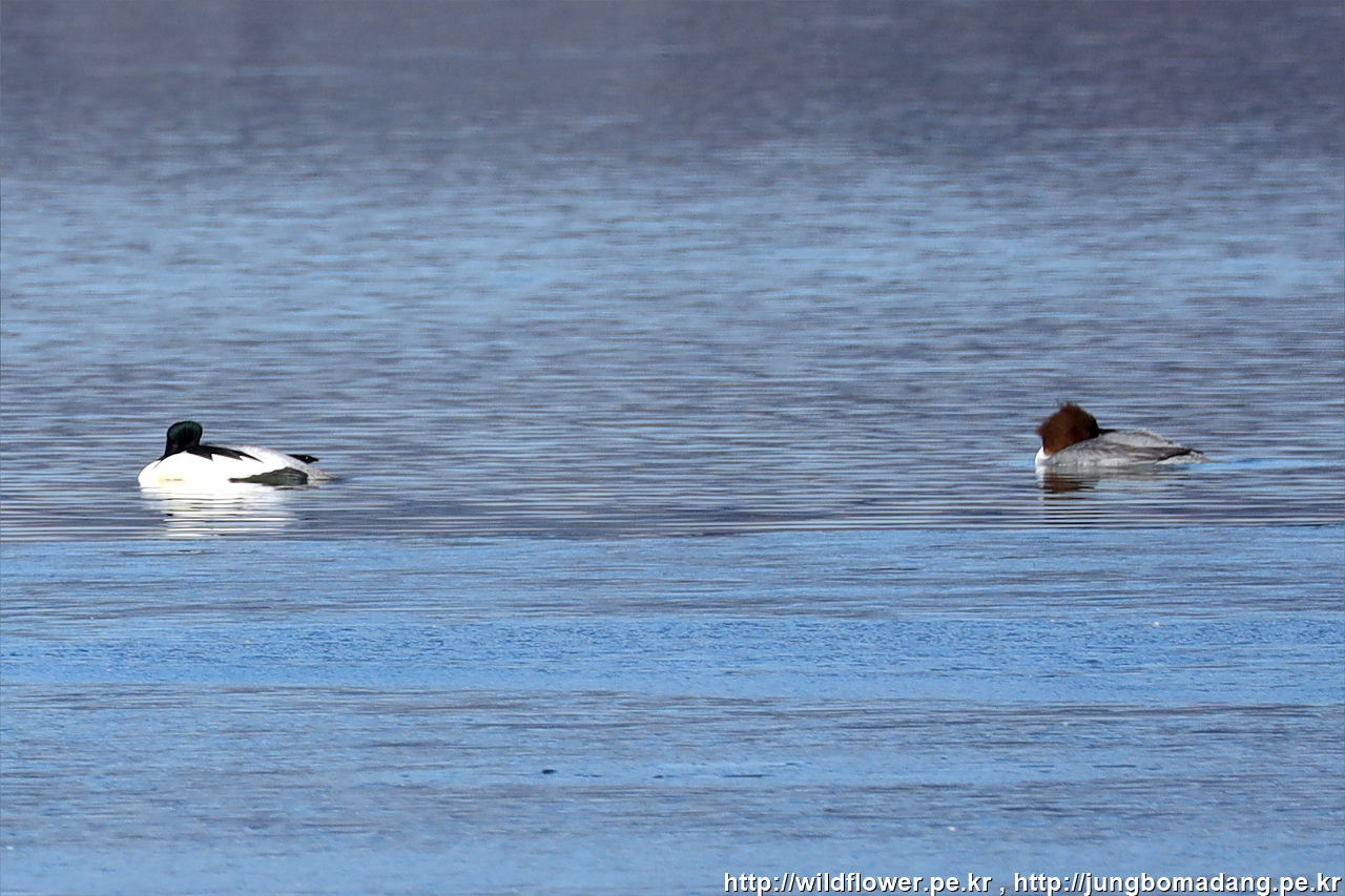 비오리 - 수컷, 암컷. 크롭 사진입니다.