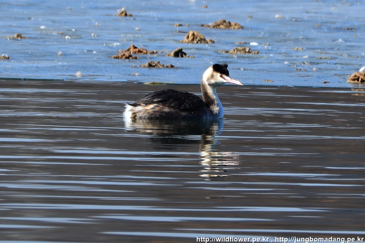 뿔논병아리 - 겨울깃. 크롭 사진입니다.
