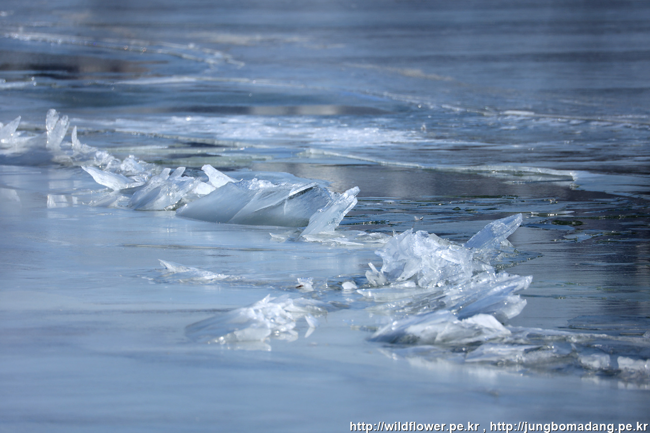 저수지 대부분이 결빙 상태입니다.
