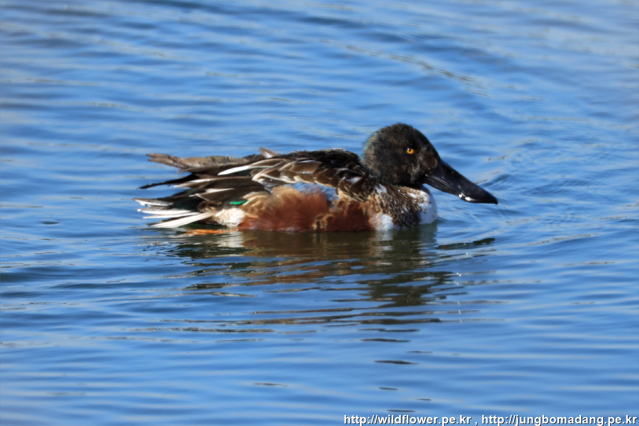 넓적부리 - 수컷 변환깃. 크롭 사진입니다.