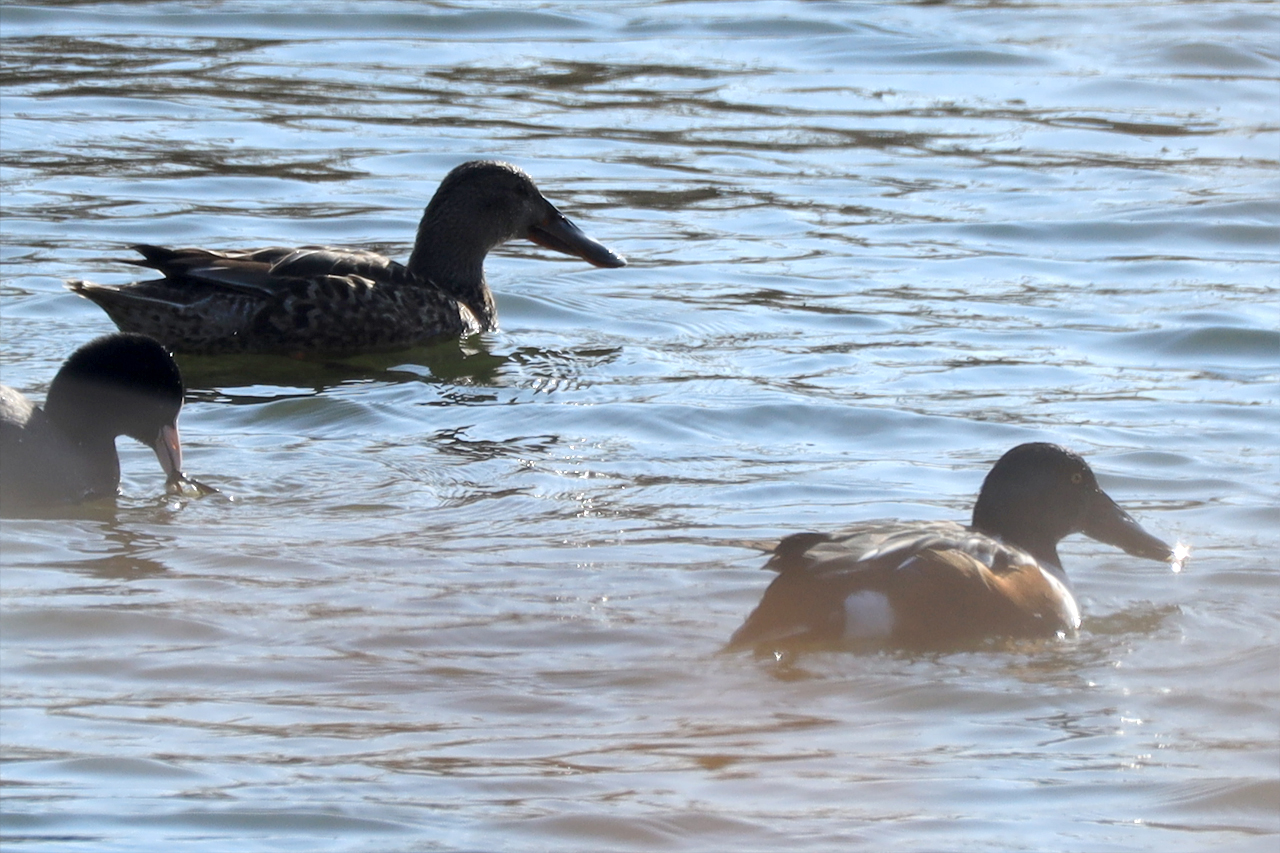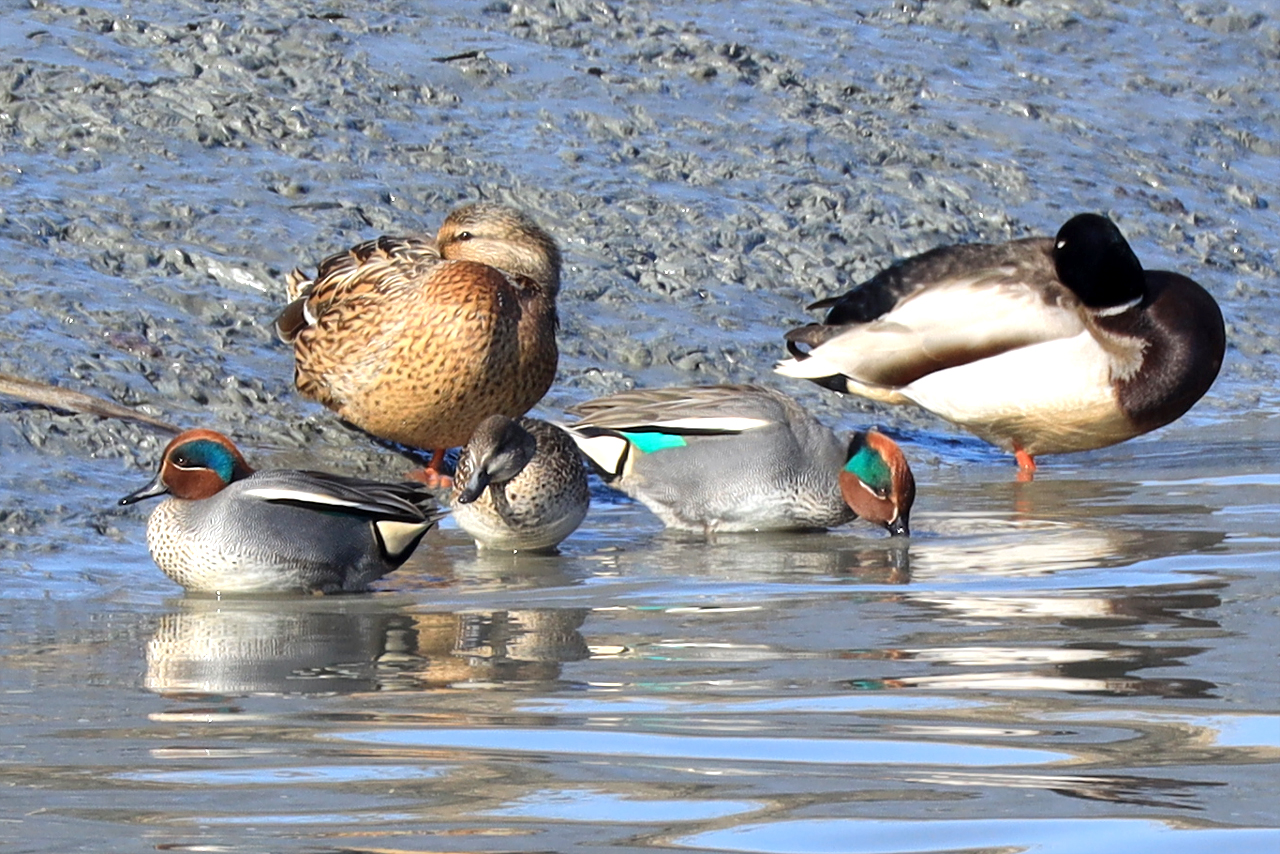 쇠오리 - 수컷, 청둥오리 - 암컷, 쇠오리 - 암컷, 쇠오리 - 수컷, 청둥오리 - 수컷. 크롭 사진입니다. 확실히 청둥오리보단 쇠오리가 작습니다.