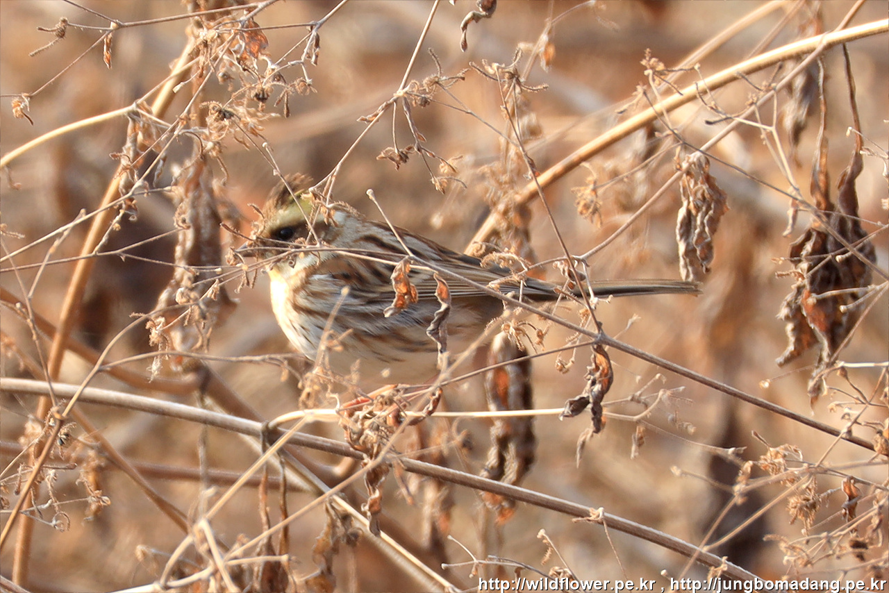 노랑턱멧새 - 암컷. 크롭 사진입니다.