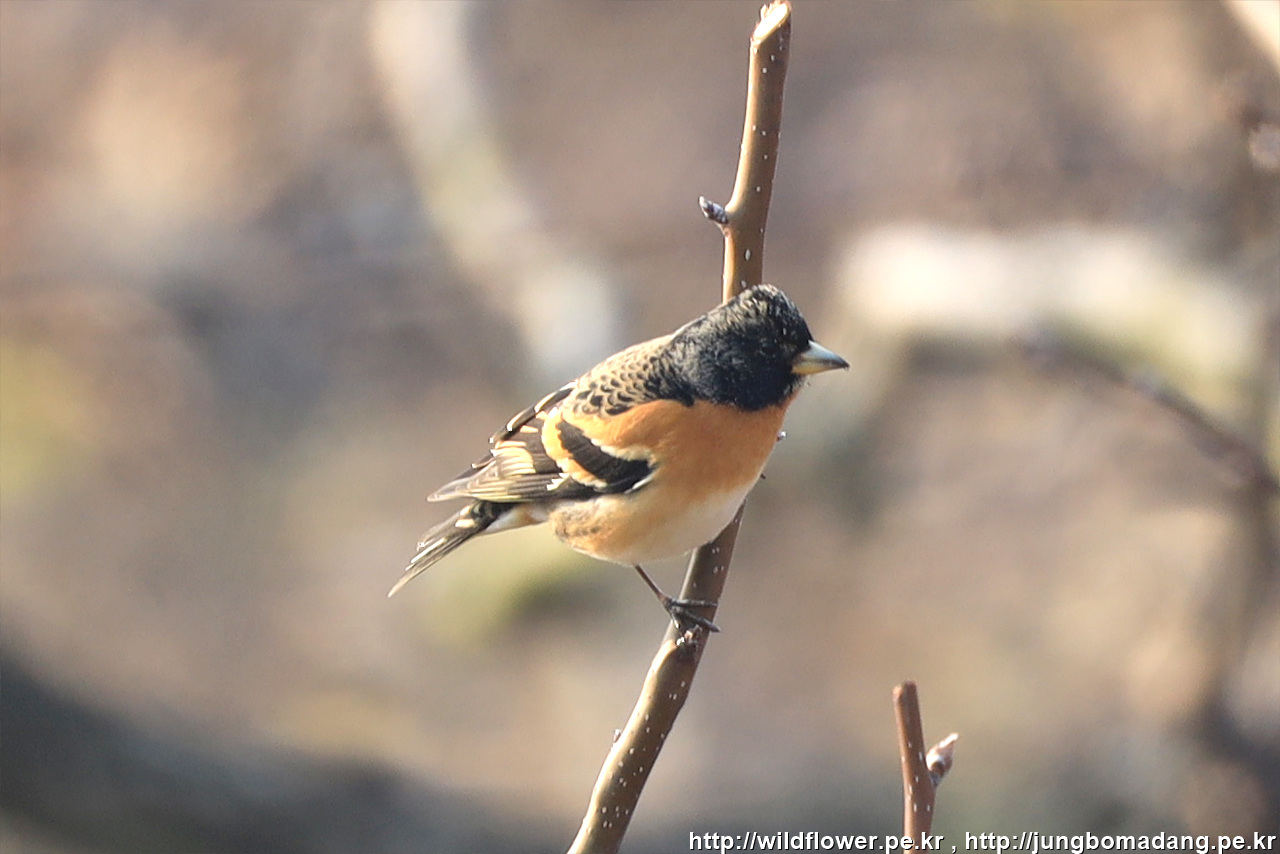 되새 - 수컷. 크롭 사진입니다. 배나무밭에서 휴식중입니다.