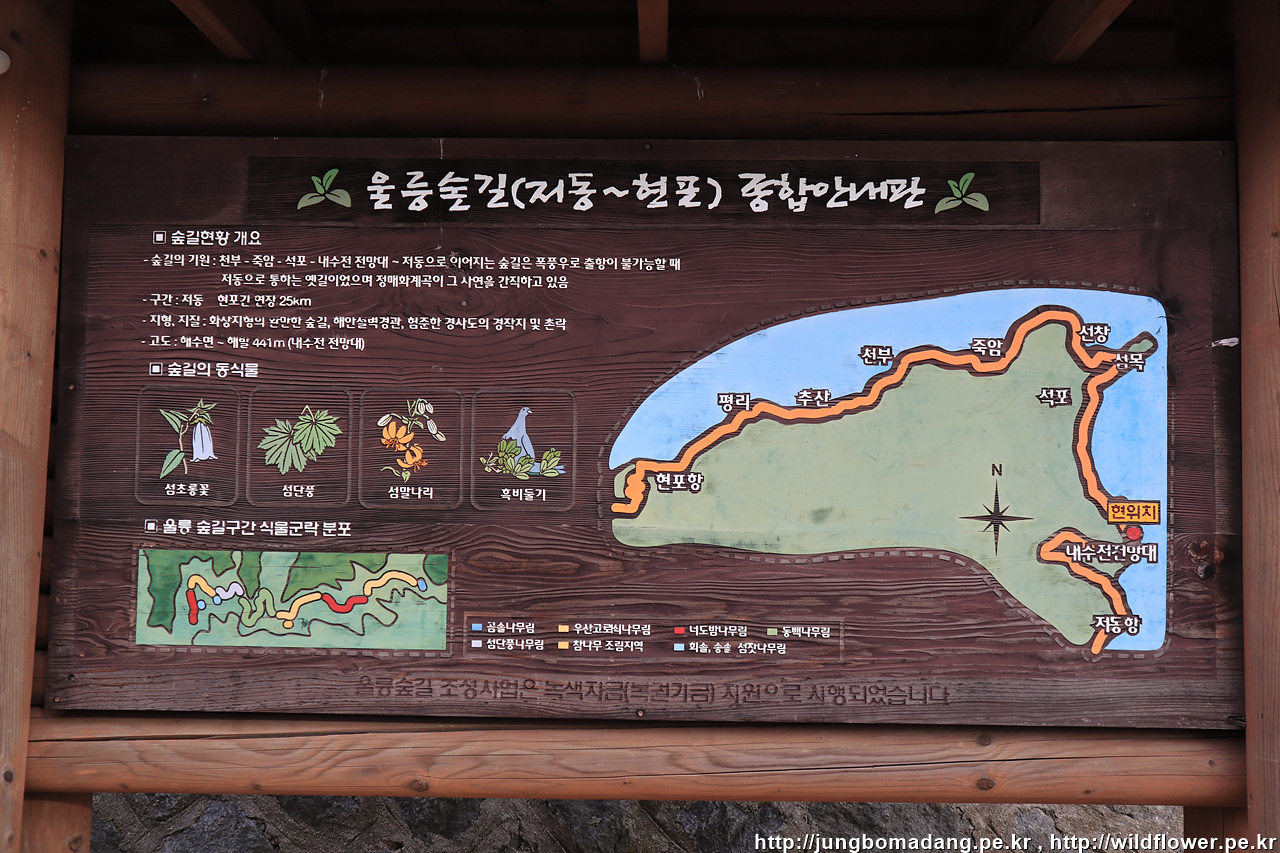 현재 울릉읍에서 시작해서 북면 경계 지점을 지나네요.