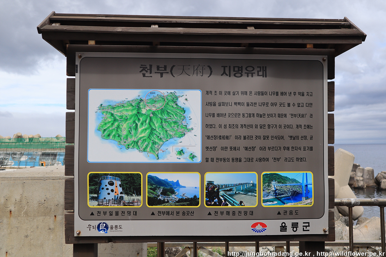 그렇게 4시간 걸려서 울릉도 저동항에 도착합니다. 간발에 차이로 버스를 놓쳐서 차선책으로 마련한 내수전일몰일출전망대로 걸어서 이동합니다.