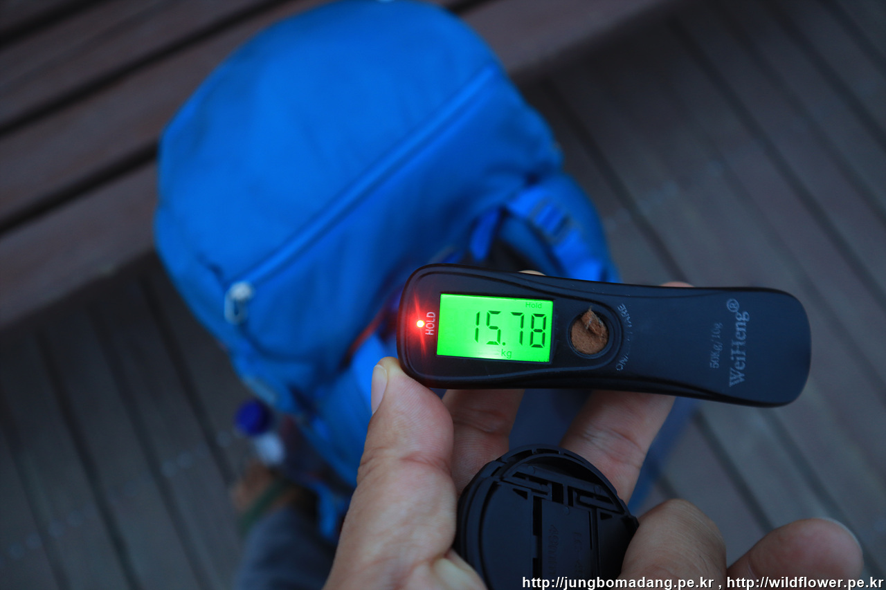 15.78Kg. 지금 현재 배낭 무게 입니다.