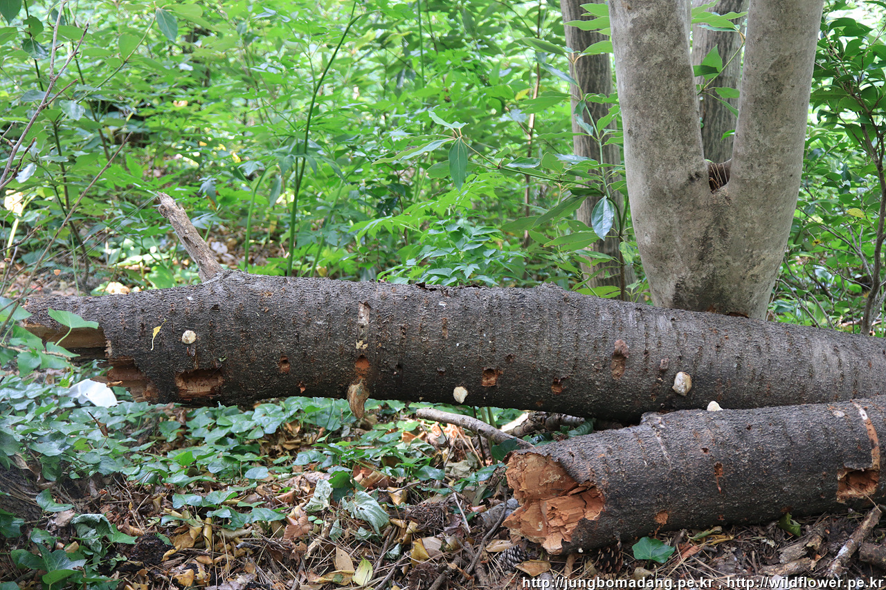 쓰러진 나무에 아무렇지 않은듯 자라는 버섯들