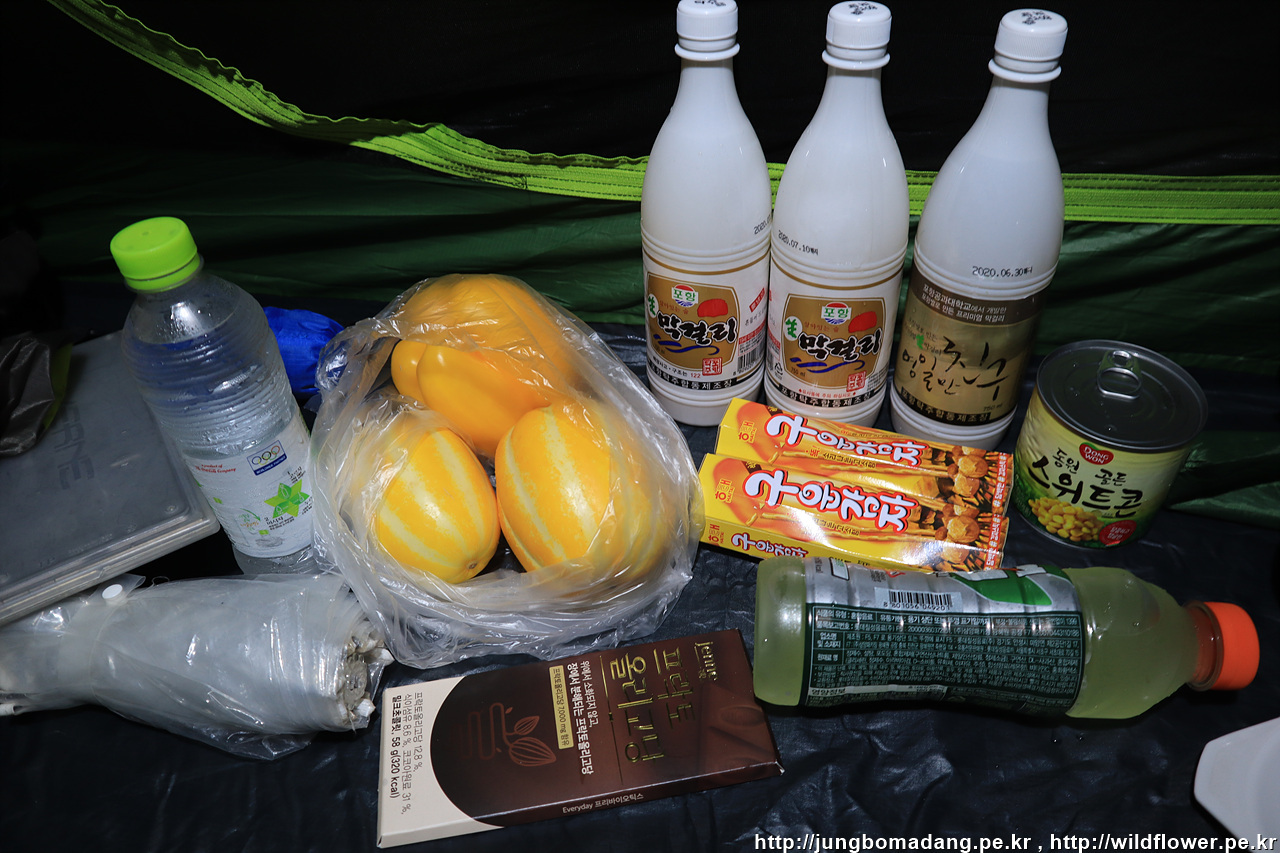 자려고 누웠는 데, 심상치 않은 물줄기가 느껴져서 나와 봤더니 지붕이 새어서 물이 줄줄 새고 있는 겁니다. 그래서 각도 조정해서 해결하고 새벽에 기상하니 물이 바닥쪽으로 들어와서 텐트 바깥 바닥쪽과 매트가 일부 젖었더라구요. ㅠㅠ