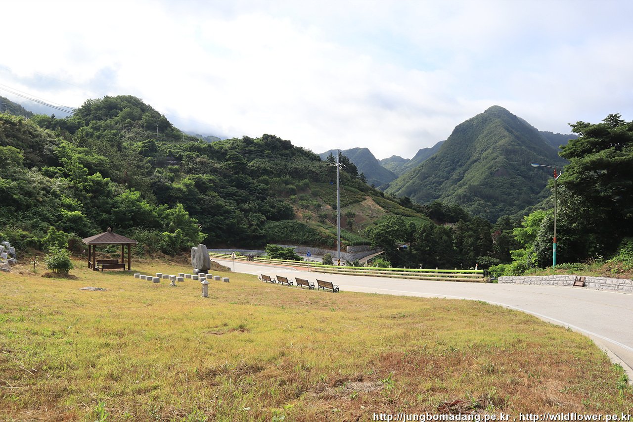 중간즘에 좀 전에 지나온 메밀밭도 보입니다.