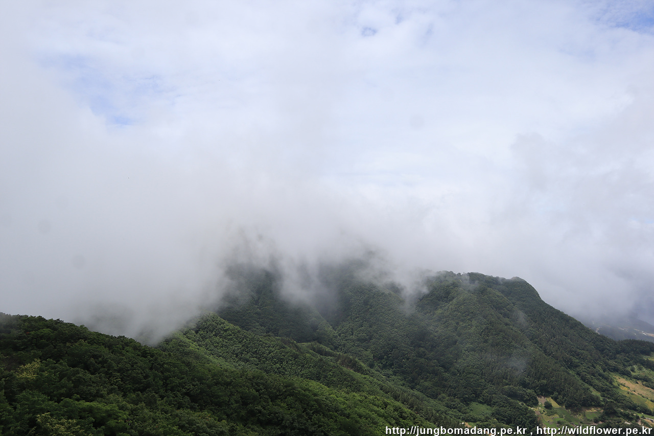 깃대봉에 오르니 해무가 막 몰려오고 있네요. 서둘러서 담아 봅니다.