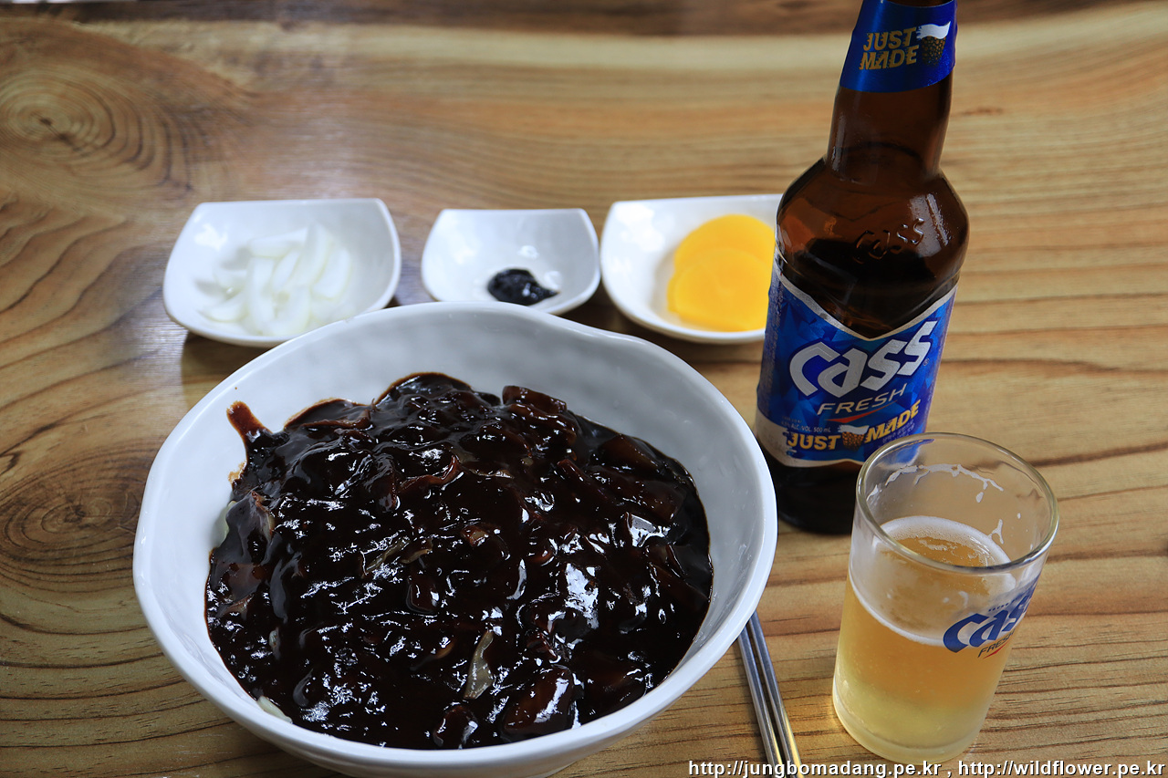 시장기를 달래러 현포에 도착 하자 마자 이번엔 중식을 간단히 요기를 하려합니다. 간짜장은 없어서 짜장면 곱배기를 맥주와 함께 주문. 그리고 안주로 깐풍기 소짜리도 하나 주문합니다.