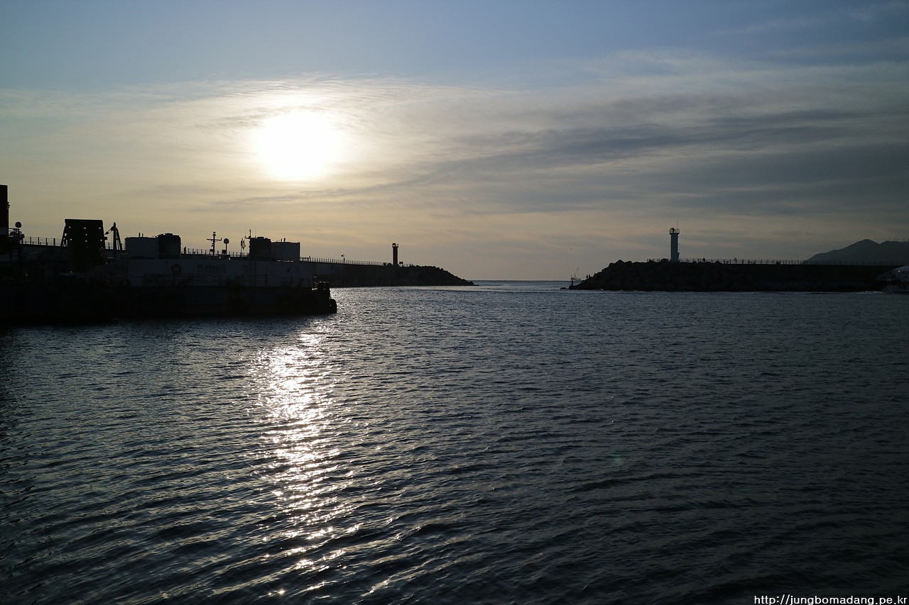 07시 08분 강릉(안목항) 도착! - 날씨는 그럭 저럭 괜찮아 보이네요. 출발할 때 기사님이 바다 기상이 안좋아서 울릉도에서 배가 빨리 돌아올 수도 있다고 그러네요, 그럼 독도는?