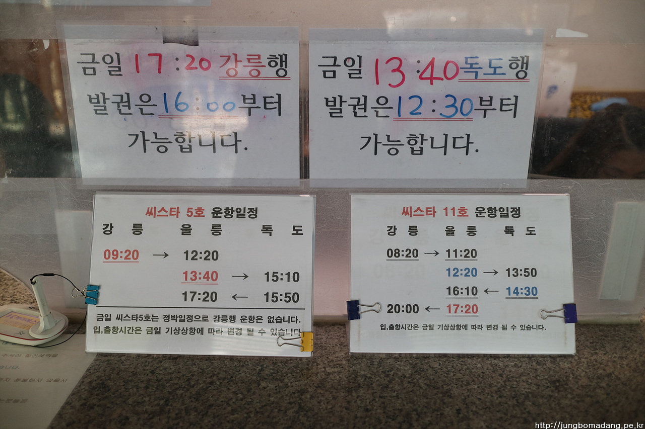 그렇게 번개처럼 큰그림을 그리고, 가장 중요한 울릉도에서 독도 배편을 알아봅니다.