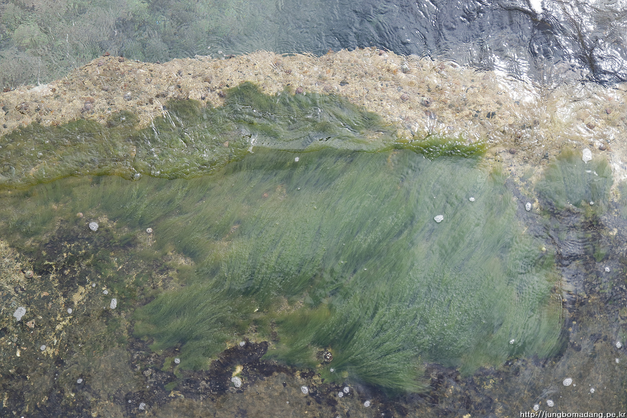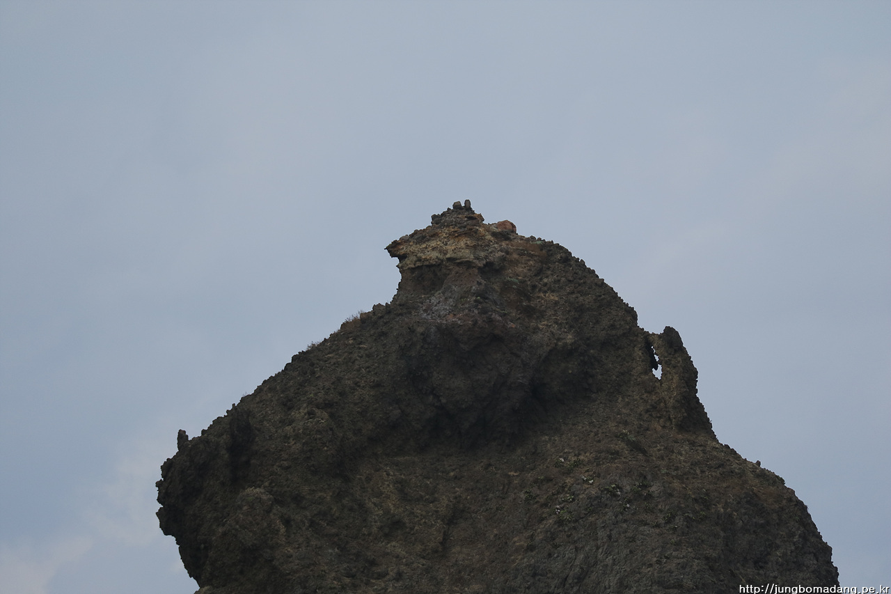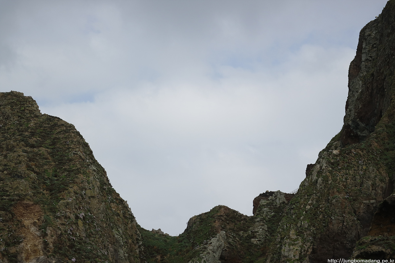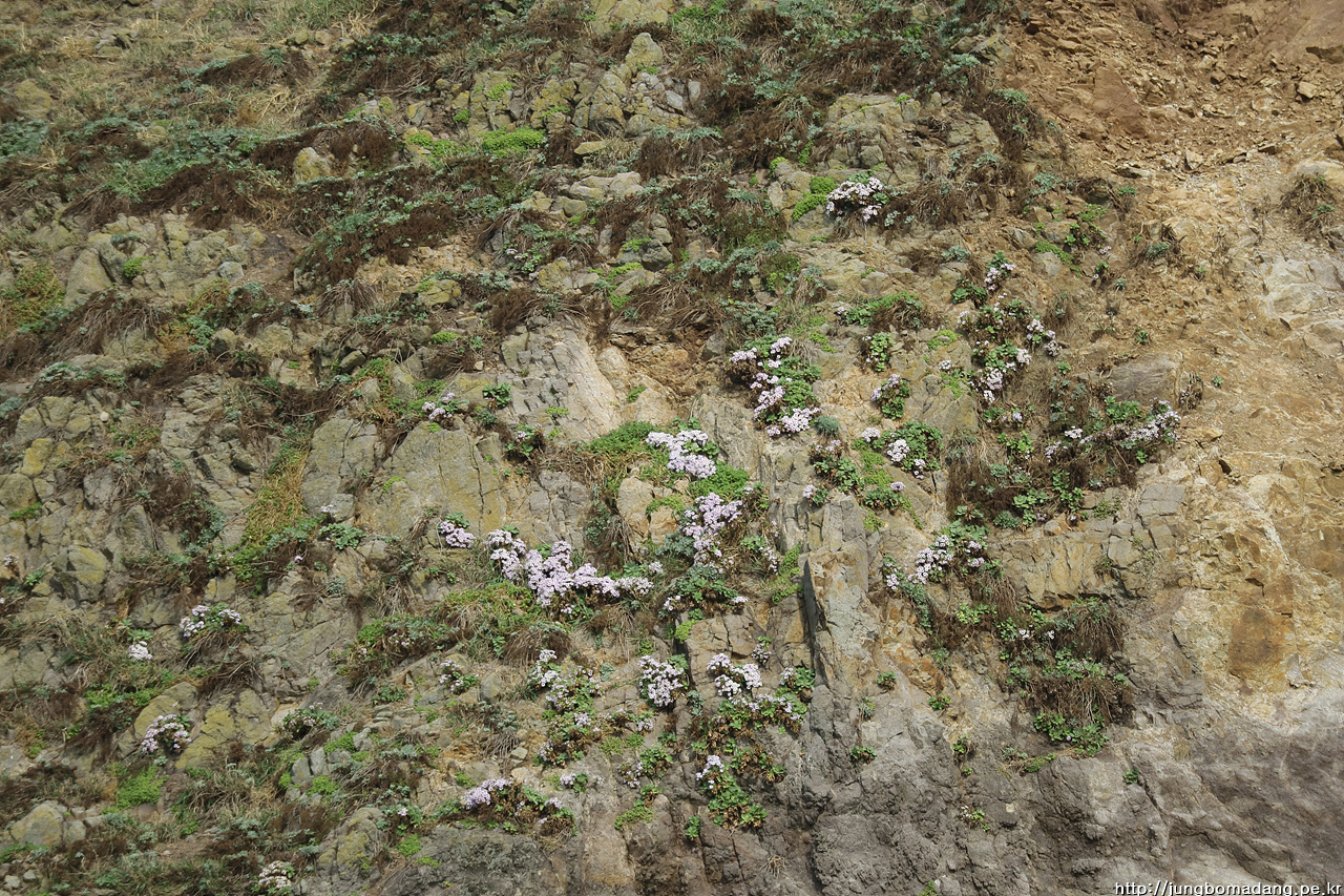 잘 보이지는 않지만, 망원으로 땡긴 이 곳에 야생화(해국)가 자리 잡고 있습니다. 민간인은 접근 불가한 가파른 바위 에 말이죠.