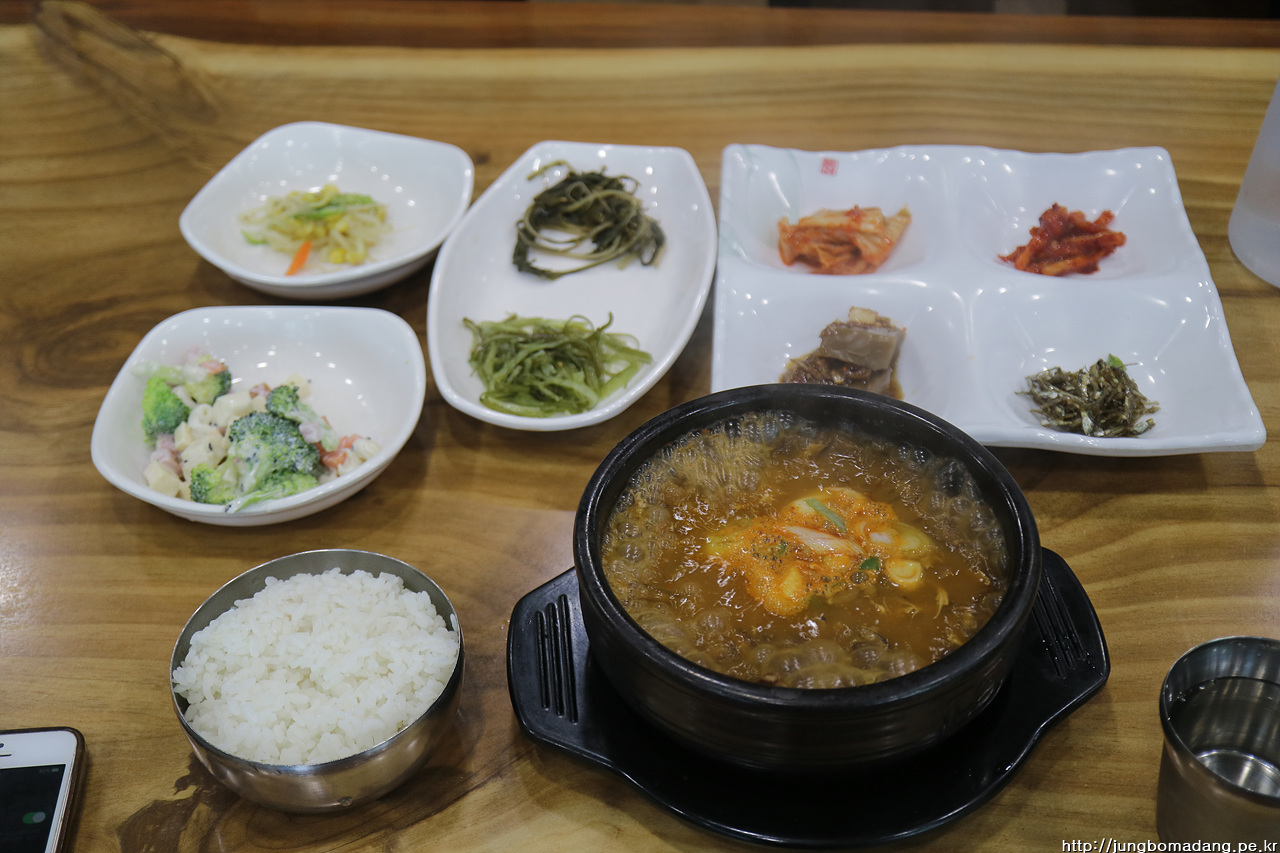 그냥 육계장이나가 아니라, 정말 맛나네요!! 저 반찬으로 제공되는 사라다에는 무려 안동에서 공수해왔다는 고구마가 담겨 있습니다. 서너번 퍼다 먹었네요 ㅋㅋ