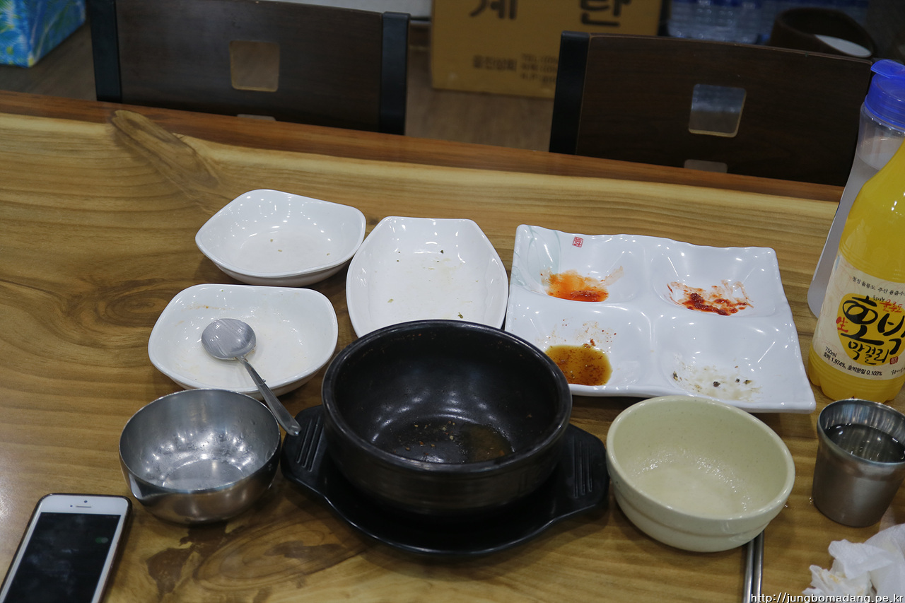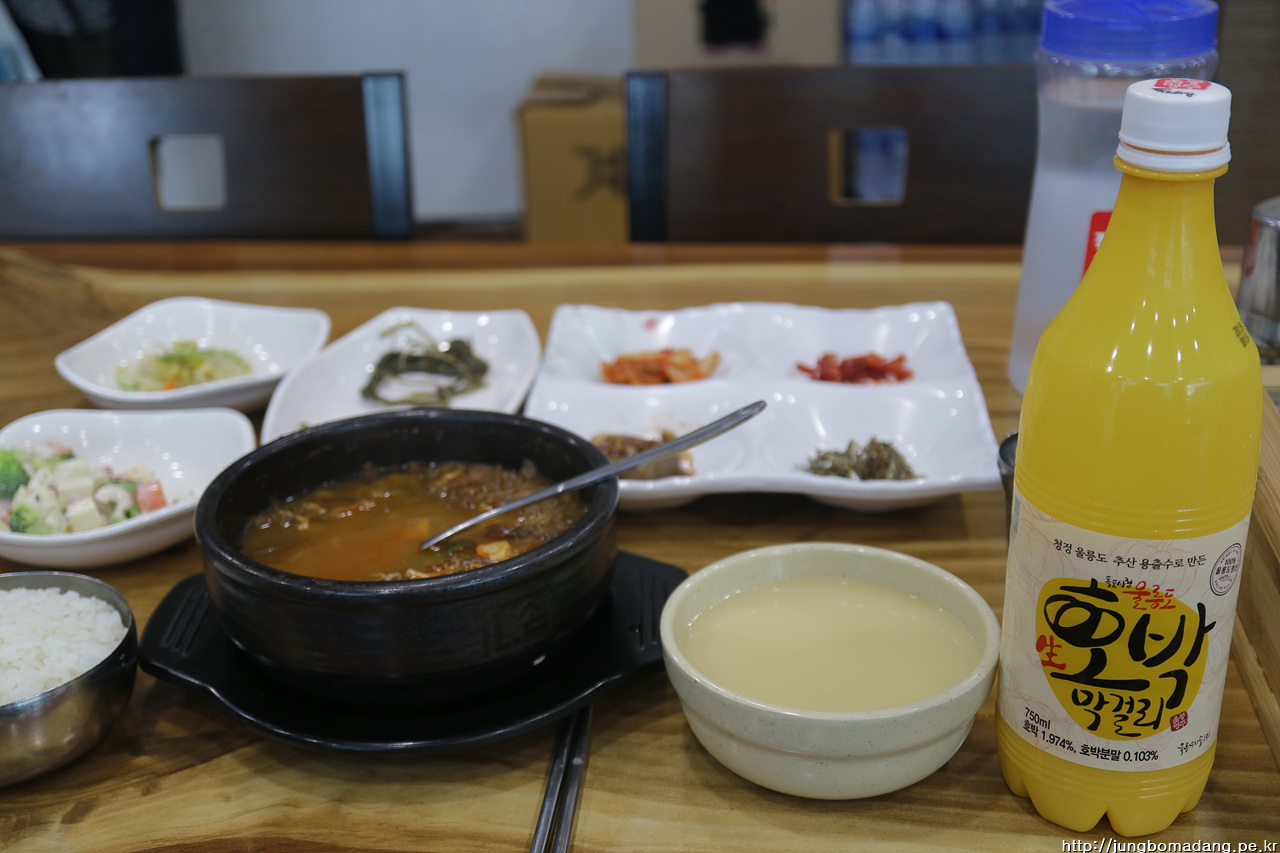 16시 20분 울릉도 사동항에 되돌아 와서 17시 20분 배가 출발 전에 이번엔 밥을 꼭 먹어야 겠다는 일념에, 뛰어가서 매표소에서 강릉가는 표를 마저 발권을 마치고, 근처 식당으로 향합니다. 근데 힝~~ 홍합밥, 따개비밥 모두 2인 이상 ㅠㅠ 별수 없이 육계장이나 먹습니다. ㅠ