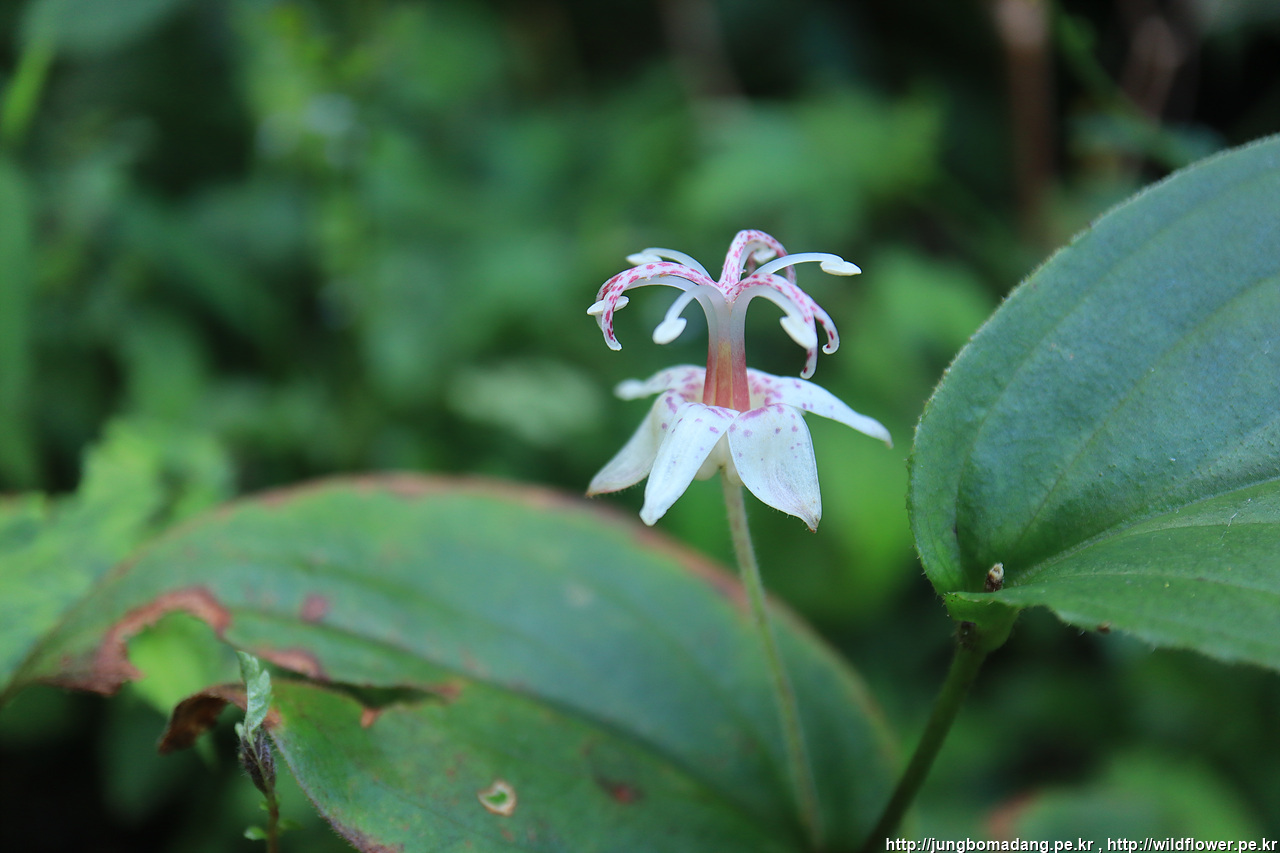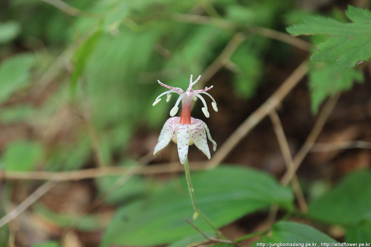 뻐꾹나리 - 이름의 유래는 꽃잎의 자주빛이 뻐꾸기의 앞가슴과 비슷한 색이라는 설과 뻐꾸기가 우는 여름에 피는 나리꽃이라는 설이 있습니다, 꽃 모양이 독특하지 않습니까?