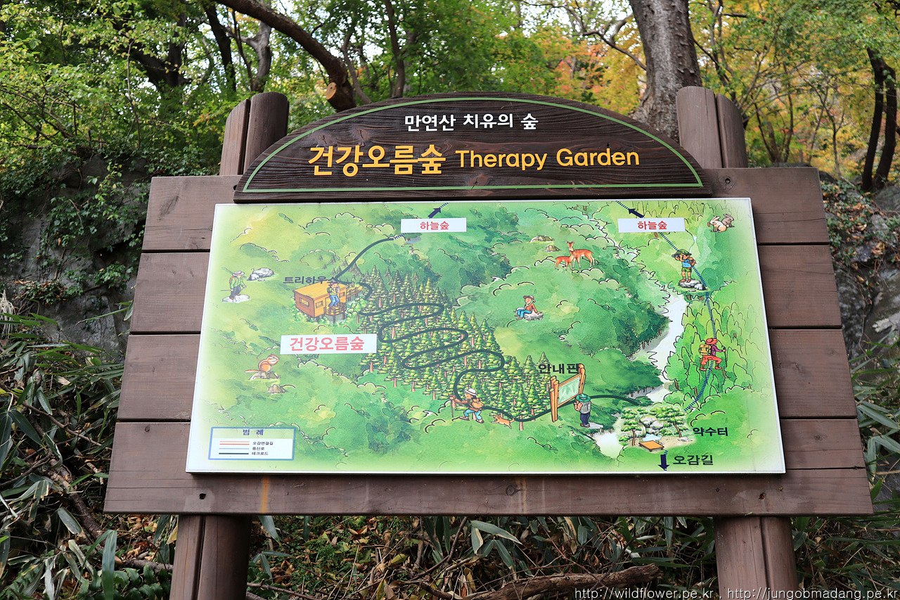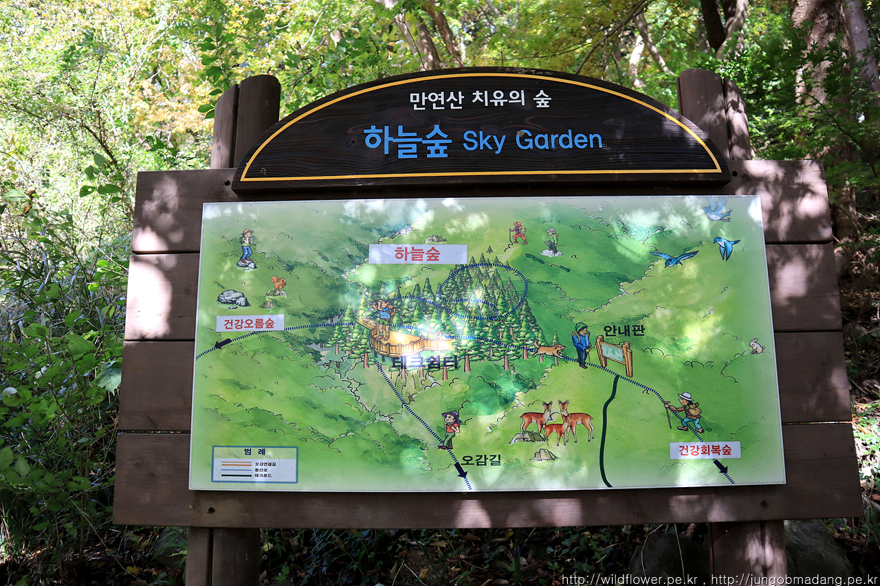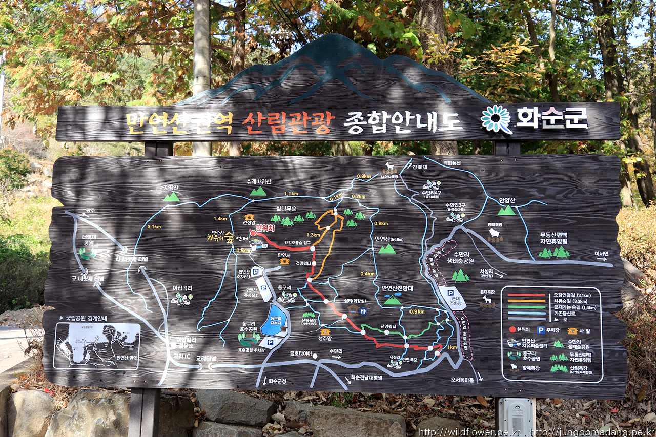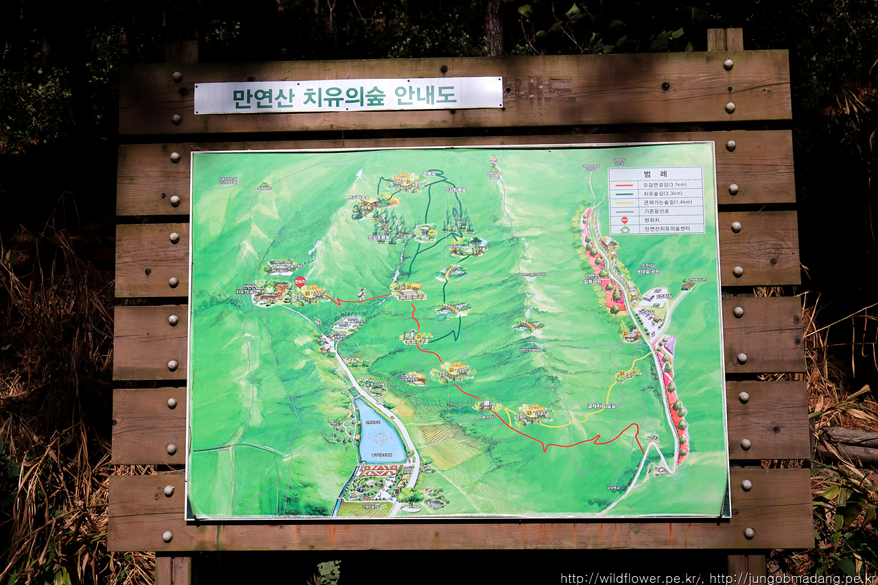 분명 이전 이정표에 만연사 표시를 보고 왔는 데 사라 졌습니다. ㅠ 치유의 숲 센터로 가면서 지나가는 분에게 물으니 치유의 숲 센터 쪽 방향이 맞는 거 같네요.