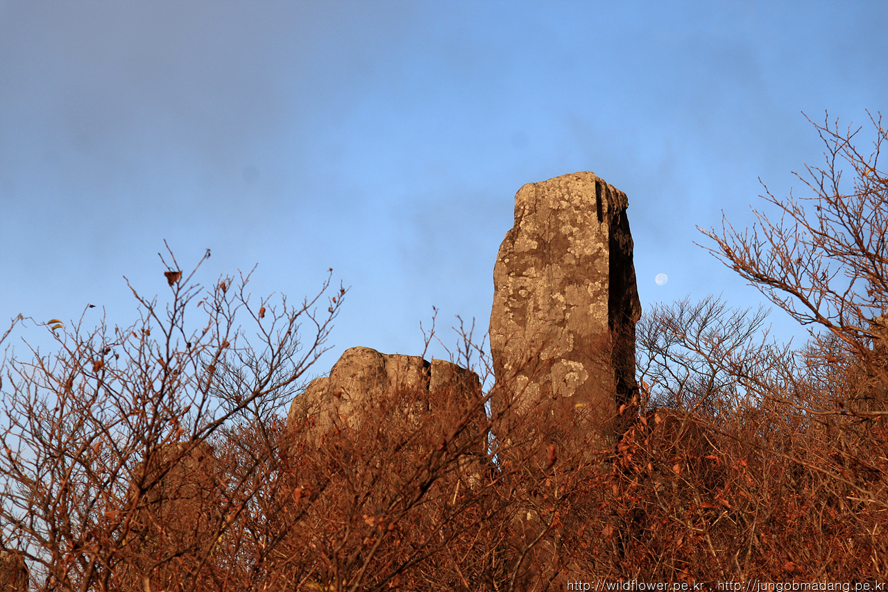 장불재 표지석과 좌측 위로 달님까지