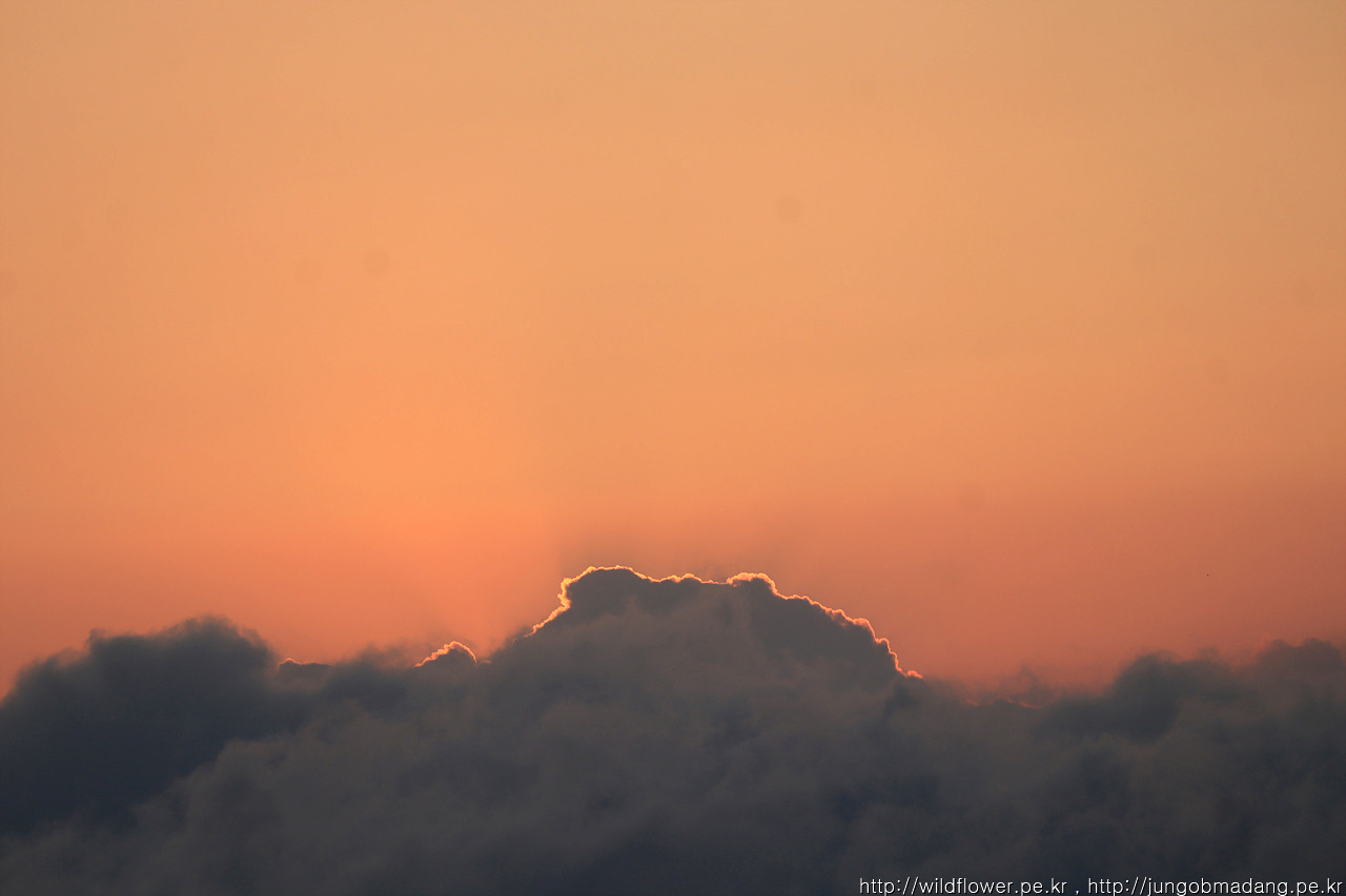 7시 10분 - 일출 시간보다 12분 늦게 햇님이 구름 위로 떠오릅니다. 구름에 가리워 못볼 줄 알았는 데 이게 어딘지 ㅋㅋ