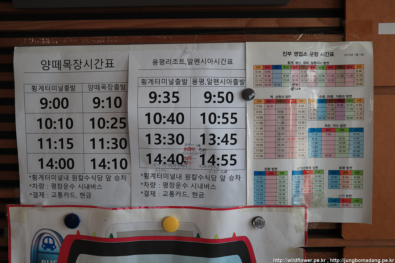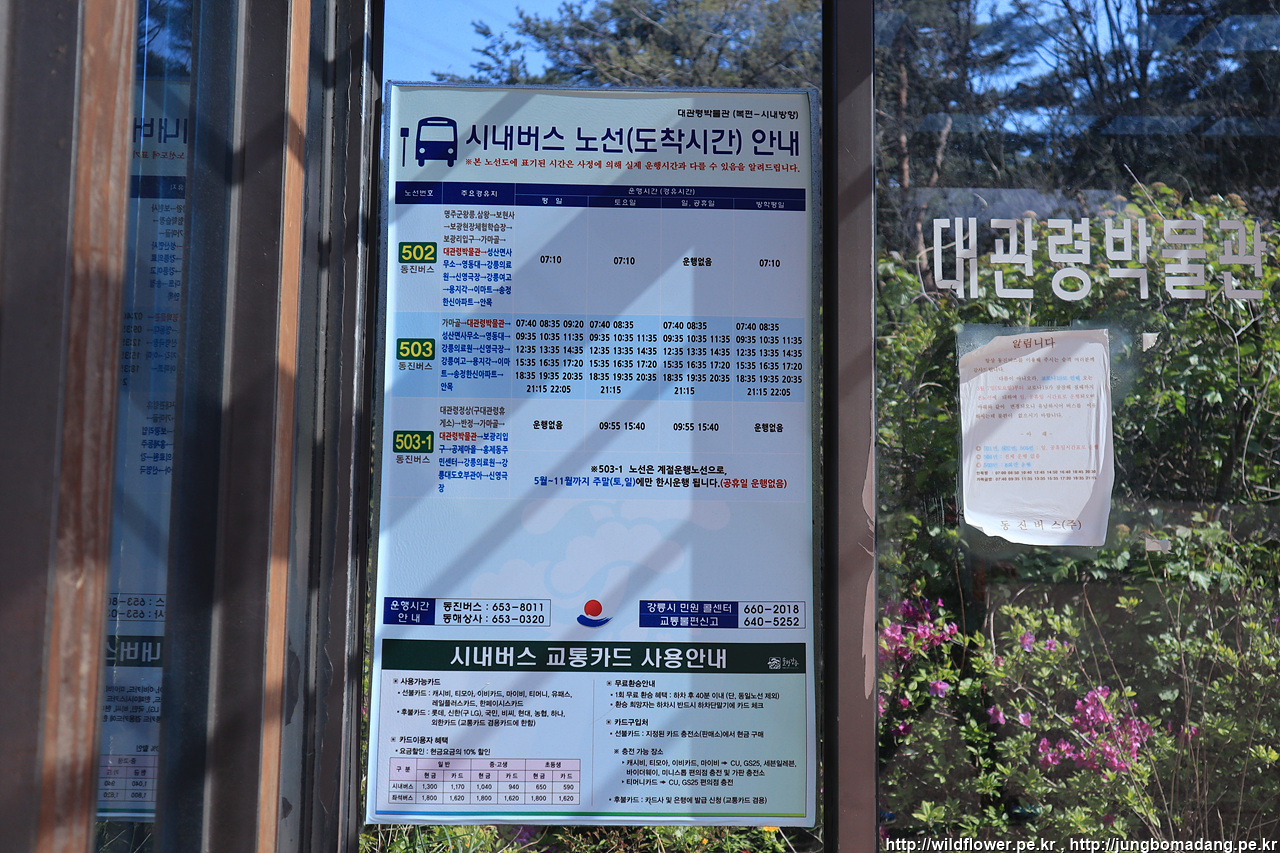 강릉시내로 가는 시간표는 2개가 있습니다. 좌측이 중국 우한발 폐렴 이전꺼