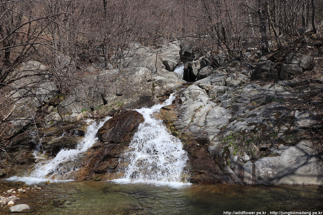 들머리 도착하여 슬슬 진행하는 데, 작은 폭포가 보입니다.