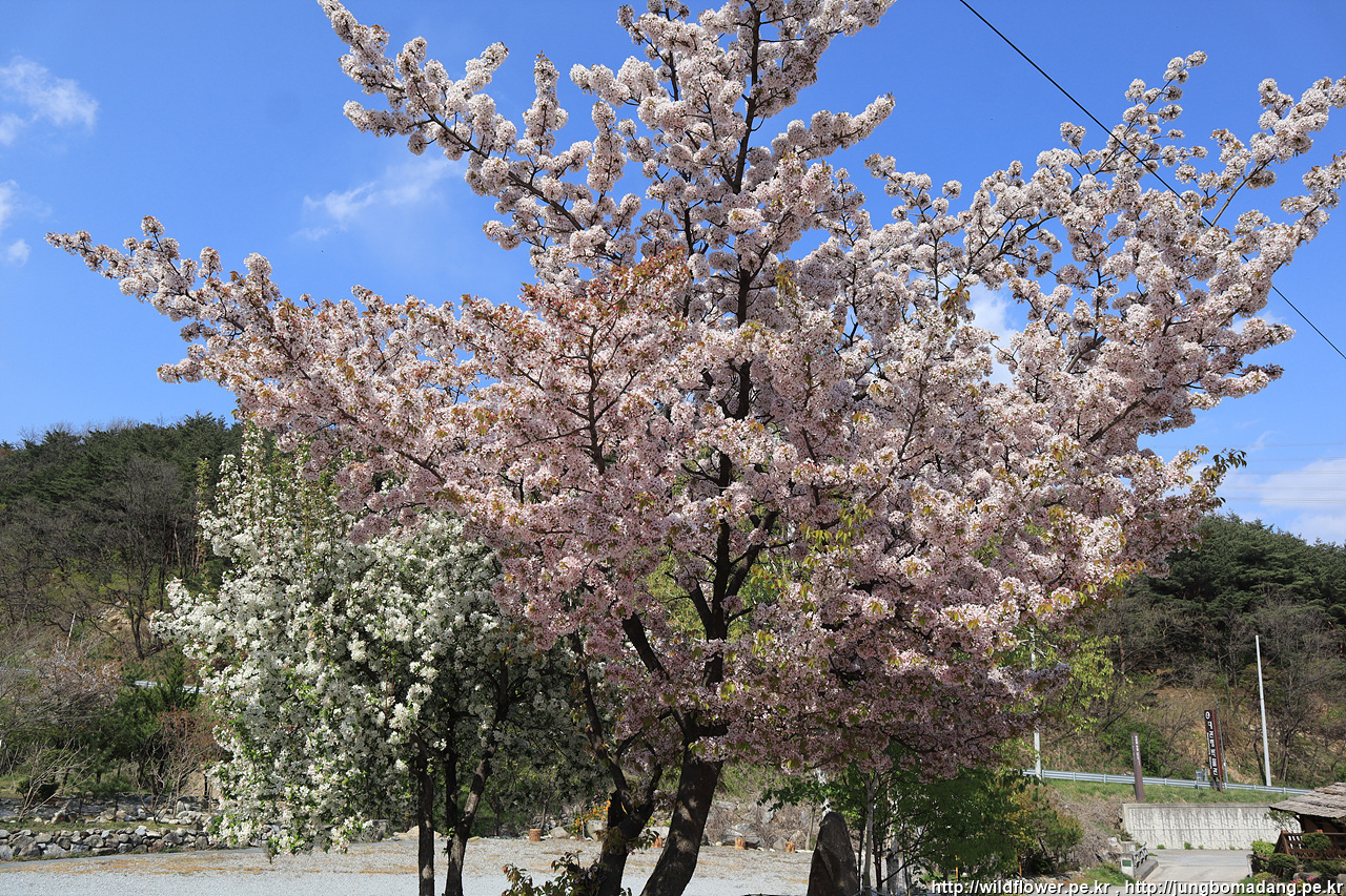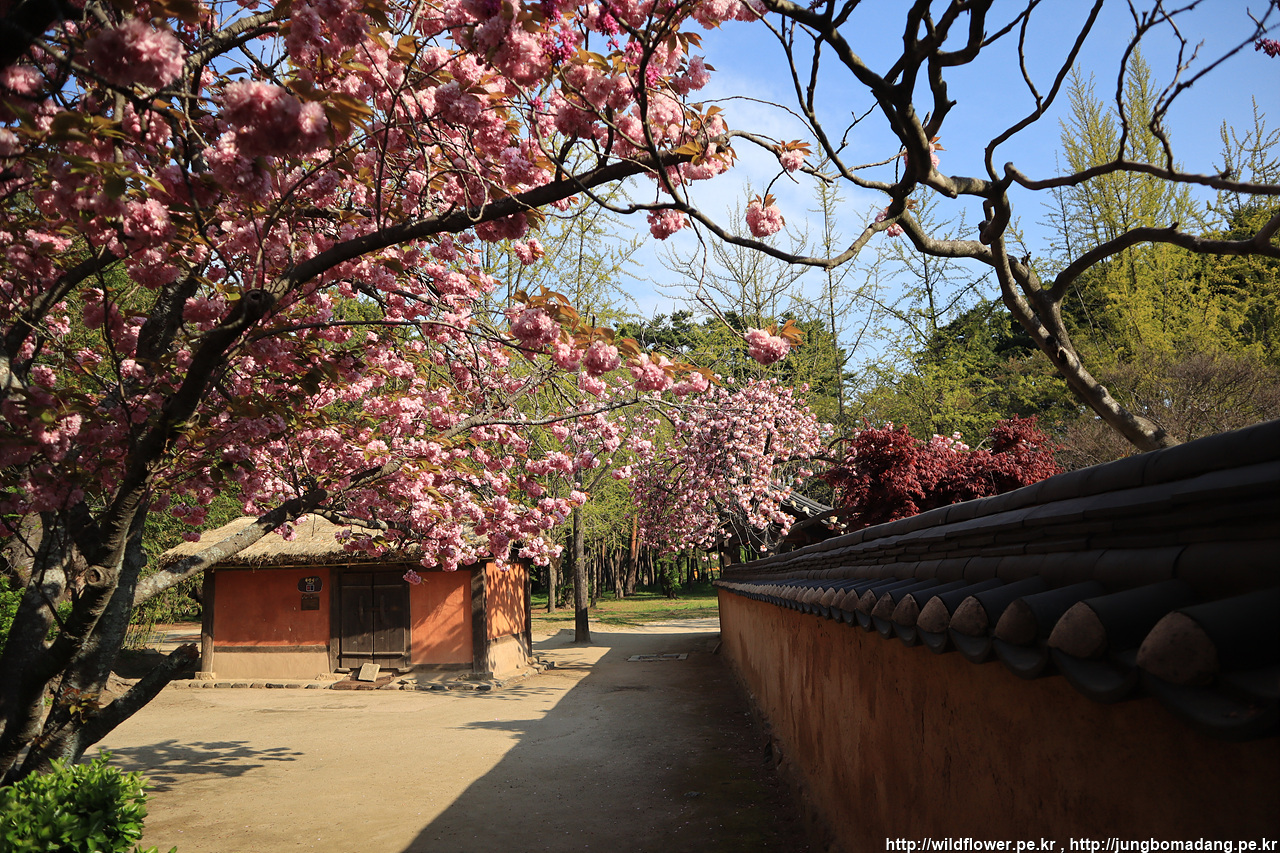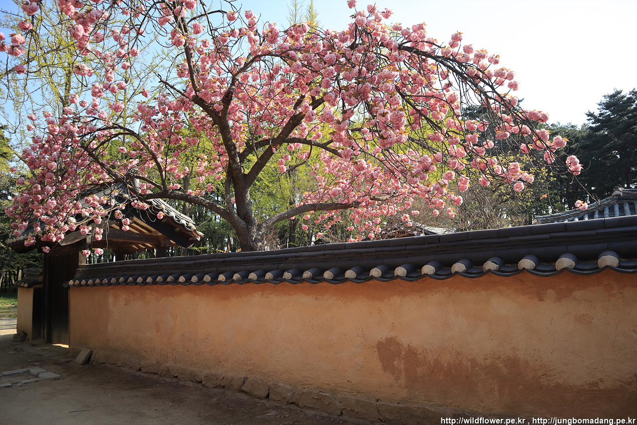 왕벚꽃과 담장이 잘 어울어 지네요.