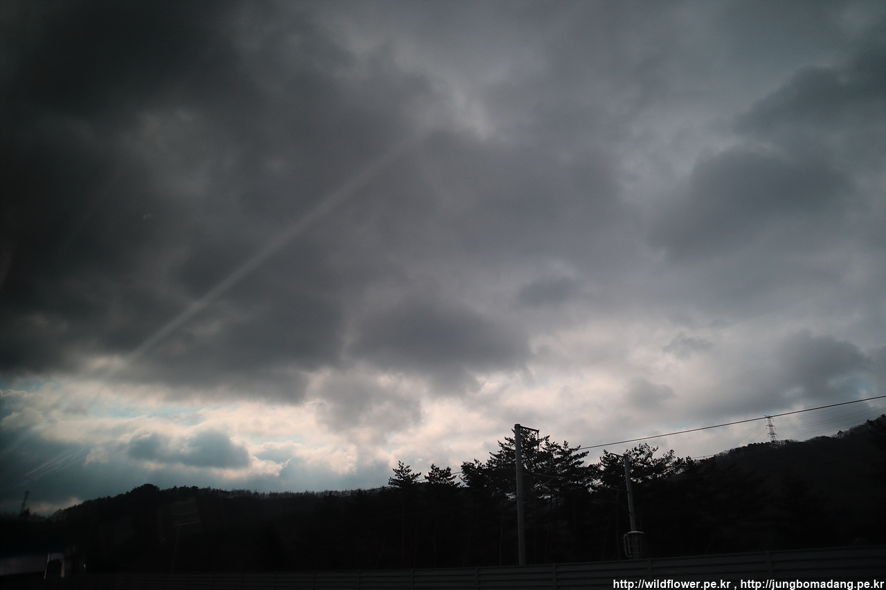횡계로 향하는 길... 갑자기 먹구름이?? 우산 안가져왔는 데?